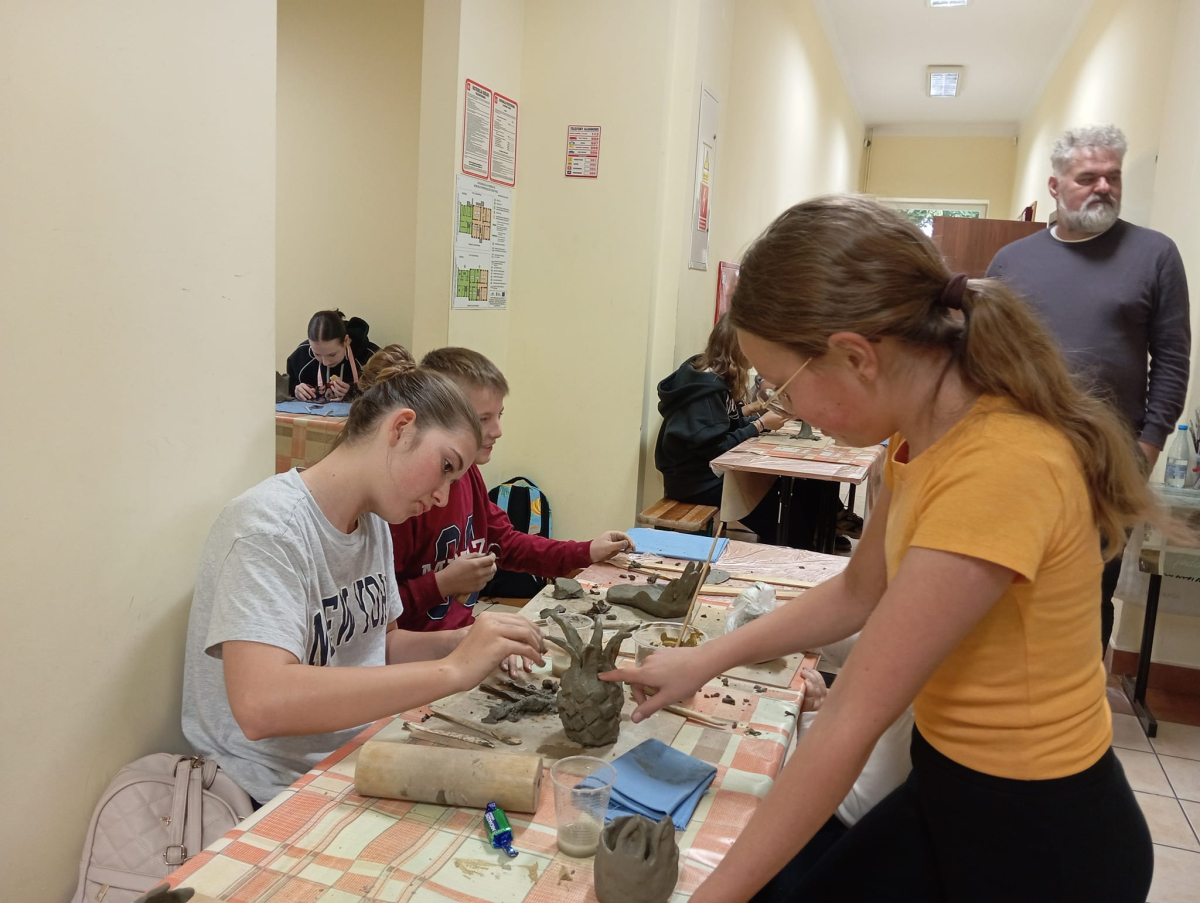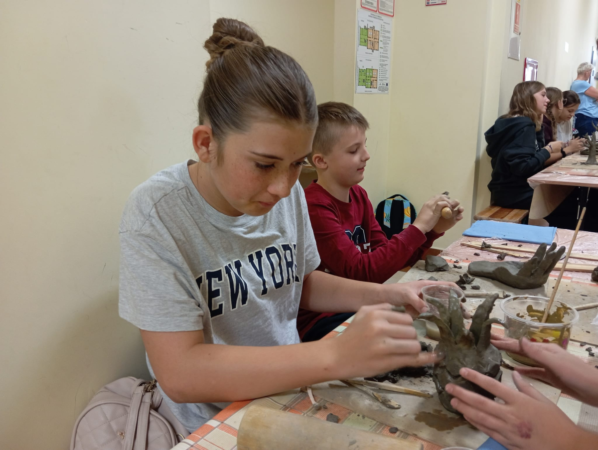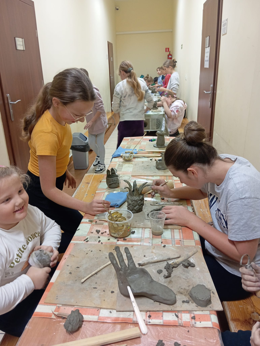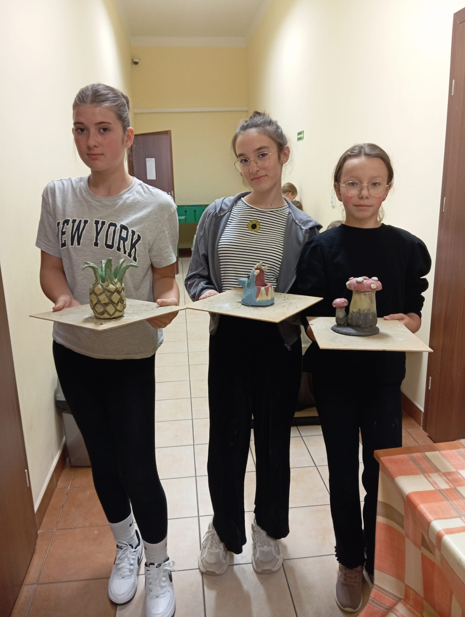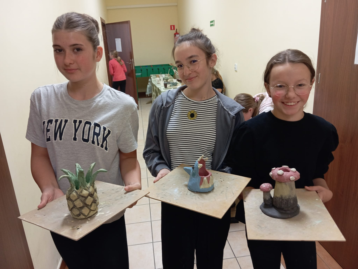 Kolejne, 24. Powiatowe Warsztaty Rzeźbiarskie „Glinolepy” za nami. Dziś swoich sił w rzeźbie z gliny spróbowały uczennice z kl. VI - Marysia, Zosia i Gabrysia. Tematem tegorocznych warsztatów był organizer rękodzielnika. Nastroje były wyśmienite, pomysłów był tuzin, więc i prace powstały wspaniałe. Teraz czekamy na podsumowanie i wystawę. Dziękujemy organizatorom za miło i twórczo spędzony czas.