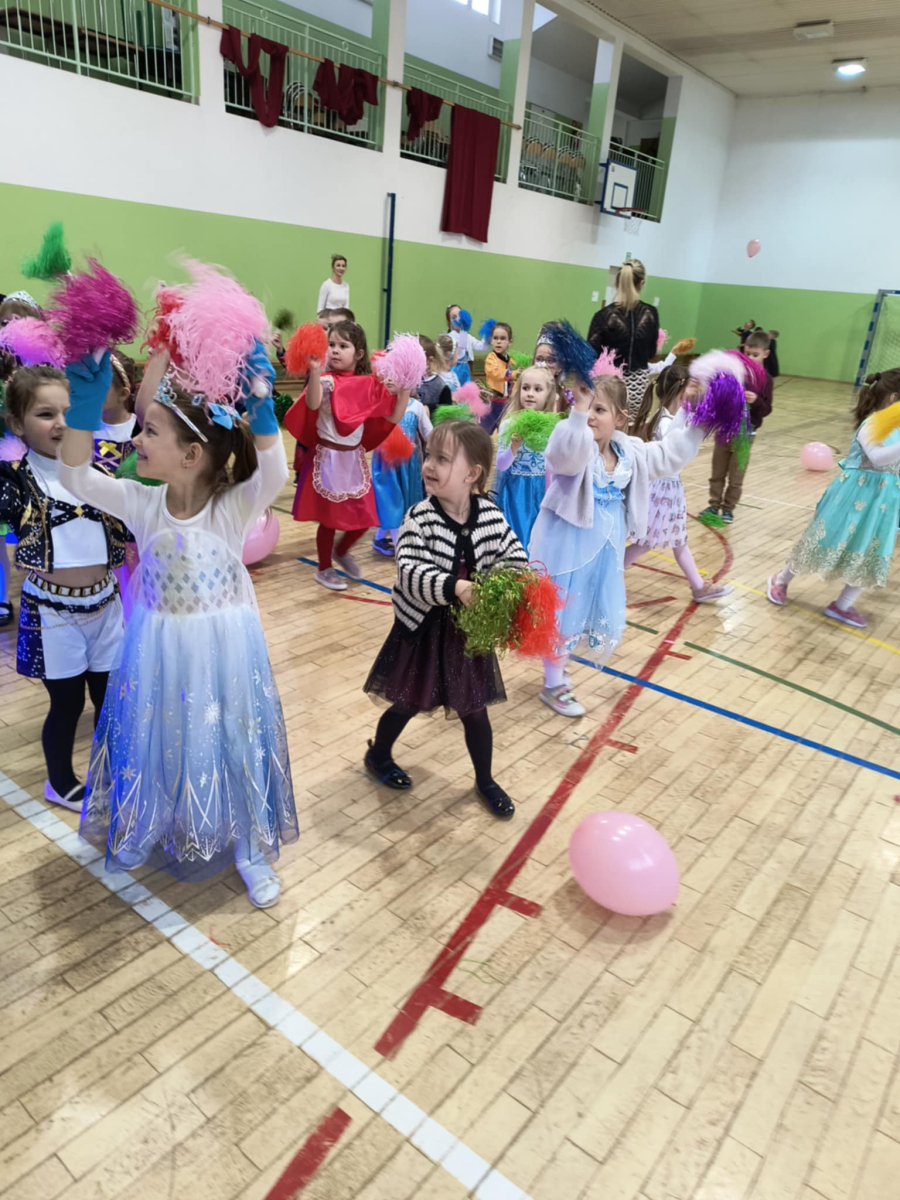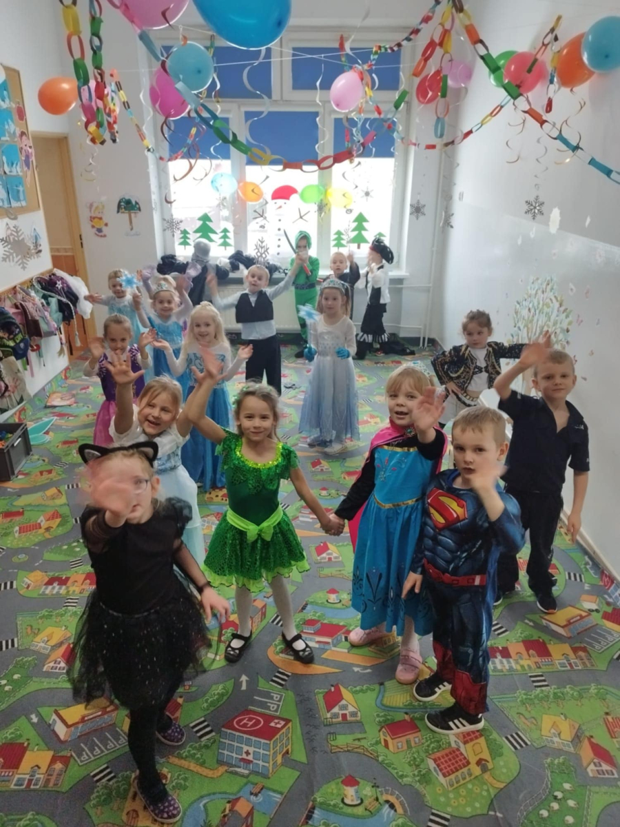 W grupie 5-latków odbył się bal karnawałowy. Dzieci przyszły w kolorowych i pomysłowych przebraniach – były księżniczki, superbohaterowie i bajkowe postacie. Wspólne tańce, zabawy przy muzyce sprawiły wszystkim wiele radości. Bal karnawałowy był pełen uśmiechu i niezapomnianych wrażeń.