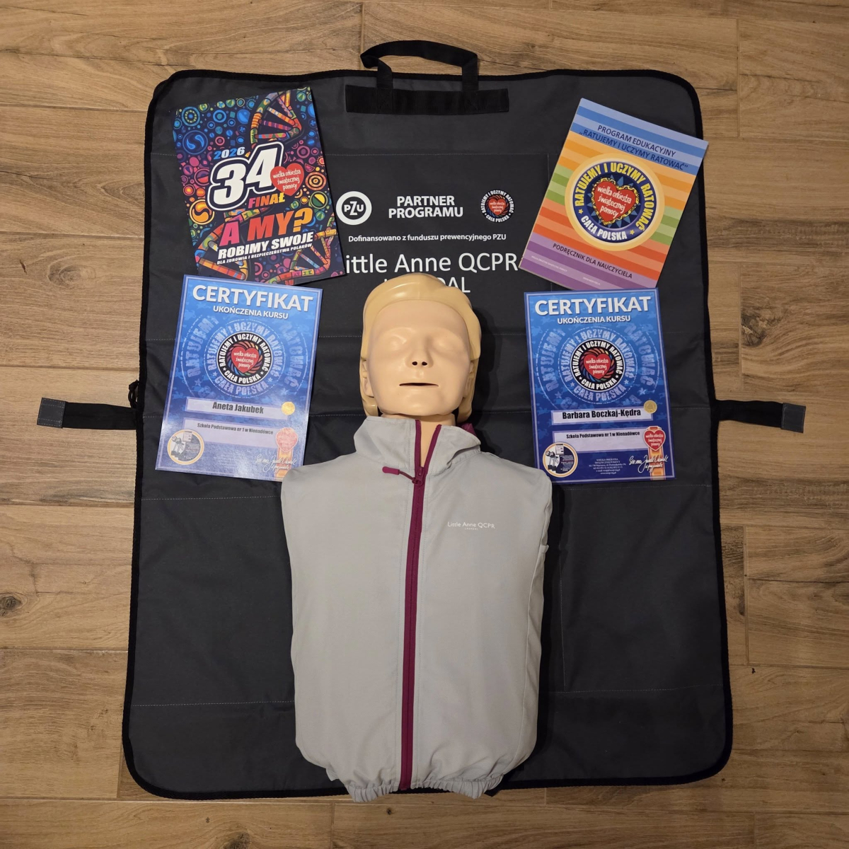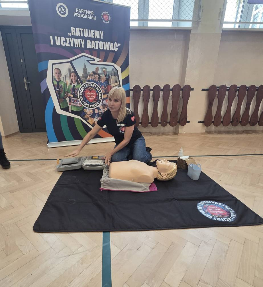 Nasza szkoła otrzymała od organizatorów materiały dydaktyczne: 5 fantomów, podręczniki dla uczniów klas 1–3, plakaty, tekturowe telefony oraz model tekturowy urządzenia AED.