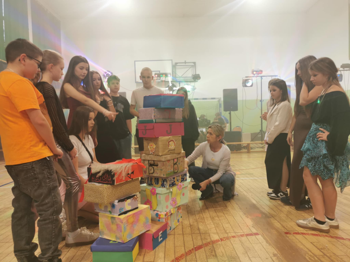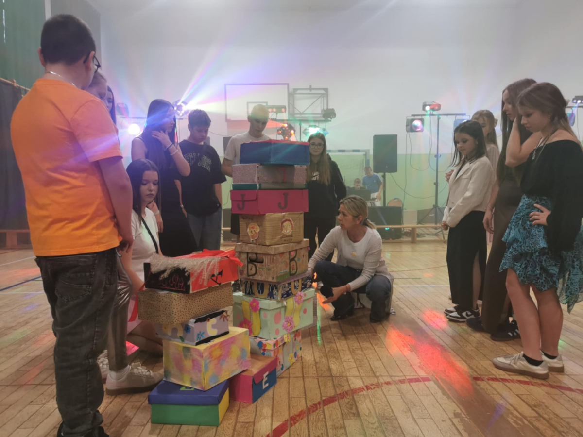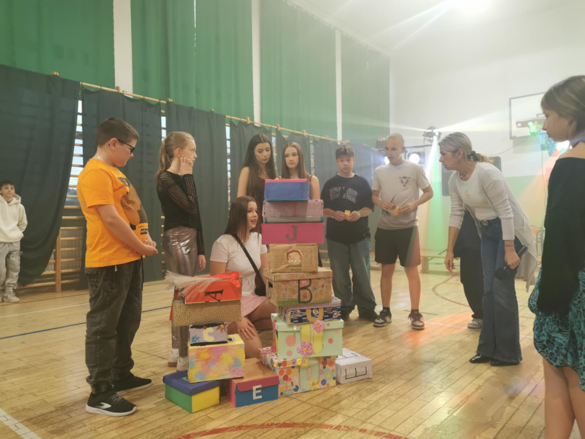 Wieczorem 16 października, nasza szkoła tętniła życiem podczas dyskoteki na podsumowanie Tygodnia Relacji. Wydarzenie odbyło się w sali gimnastycznej, która na ten wieczór zamieniła się w kolorową przestrzeń pełną świateł, muzyki i radości.