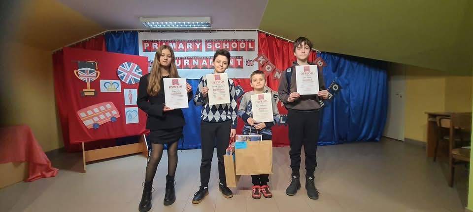 Z wielką przyjemnością śpieszymy ogłosić, że dwóch uczniów naszej szkoły stanęło dziś na podium Gminnego Konkursu Języka Angielskiego Macmillan Primary School Tournament, organizowanego przez Zespół Szkół w Trzebosi. Dawid zajął 1. miejsce w kategorii klas 4-5, Dominik uplasował się na 3. miejscu w kategorii klas 6-7. Gratulujemy i całej czwórce życzymy dalszego zapału w nauce języka angielskiego i wielu sukcesów.