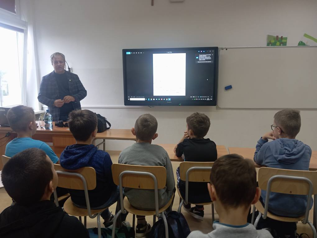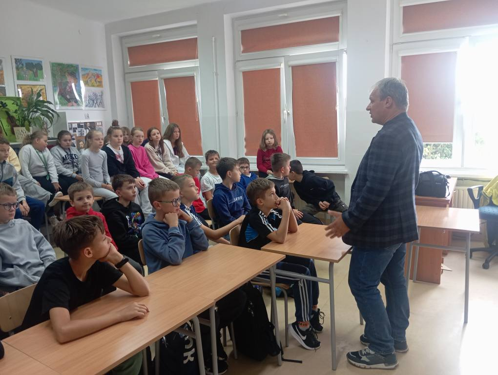 Wczoraj w naszej szkole gościł Pan Piotr Ożóg- bibliotekarz i historyk z Trzebuski, od lat kultywujący wśród młodych ludzi wiedzę o "Małym Katyniu Ziemi Sokołowskiej". Przybliżył on uczniom klas IV i V historię tragicznych wydarzeń w Trzebusce, w lesie turzańskim oraz na nienadowskim Cyplu w 1944 r., pokazał, jak wygląda teraz miejsce byłego obozu, zachęcił do udziału w uroczystościach i wydarzeniach, upamiętniających bohaterów, którzy oddali tam życie za Ojczyznę.