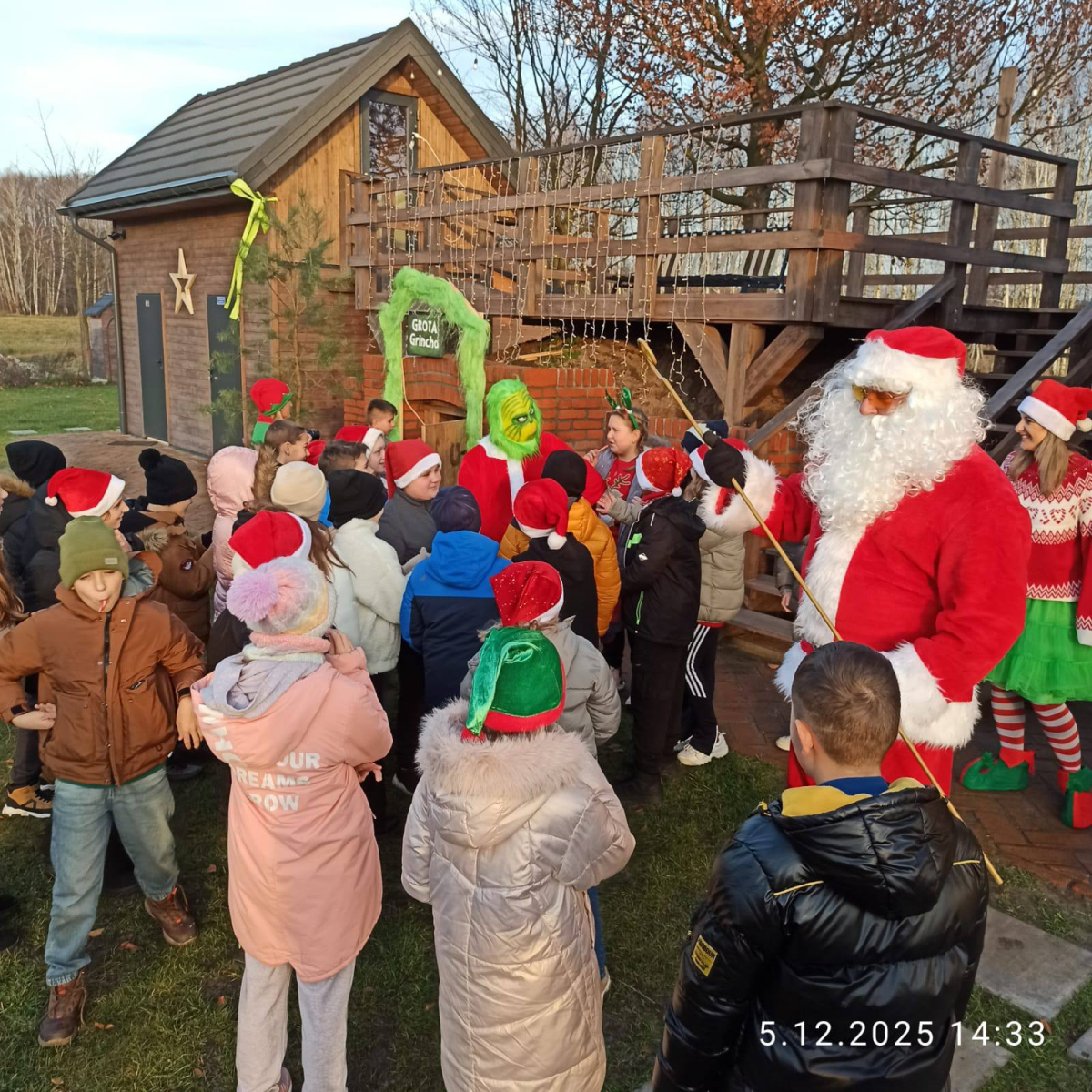 Ho, Ho, ho! Czy w klasach 4 i 5 są grzeczne dzieci? Oczywiście! Potwierdziło to piątkowe spotkanie z Mikołajem w Mazury 201. Zanim jednak udaliśmy się tam, dzieci przeszły mikołajkowy maraton zagadkowy na ścieżce przyrodniczej w Wilczej Woli. Tam, wśród lasów, uczniowie rozwiązywali zagadki, przygotowane przez elfy, podziwiając jednocześnie piękno przyrody. To był cudowny dzień, pełen przygód i niespodzianek.