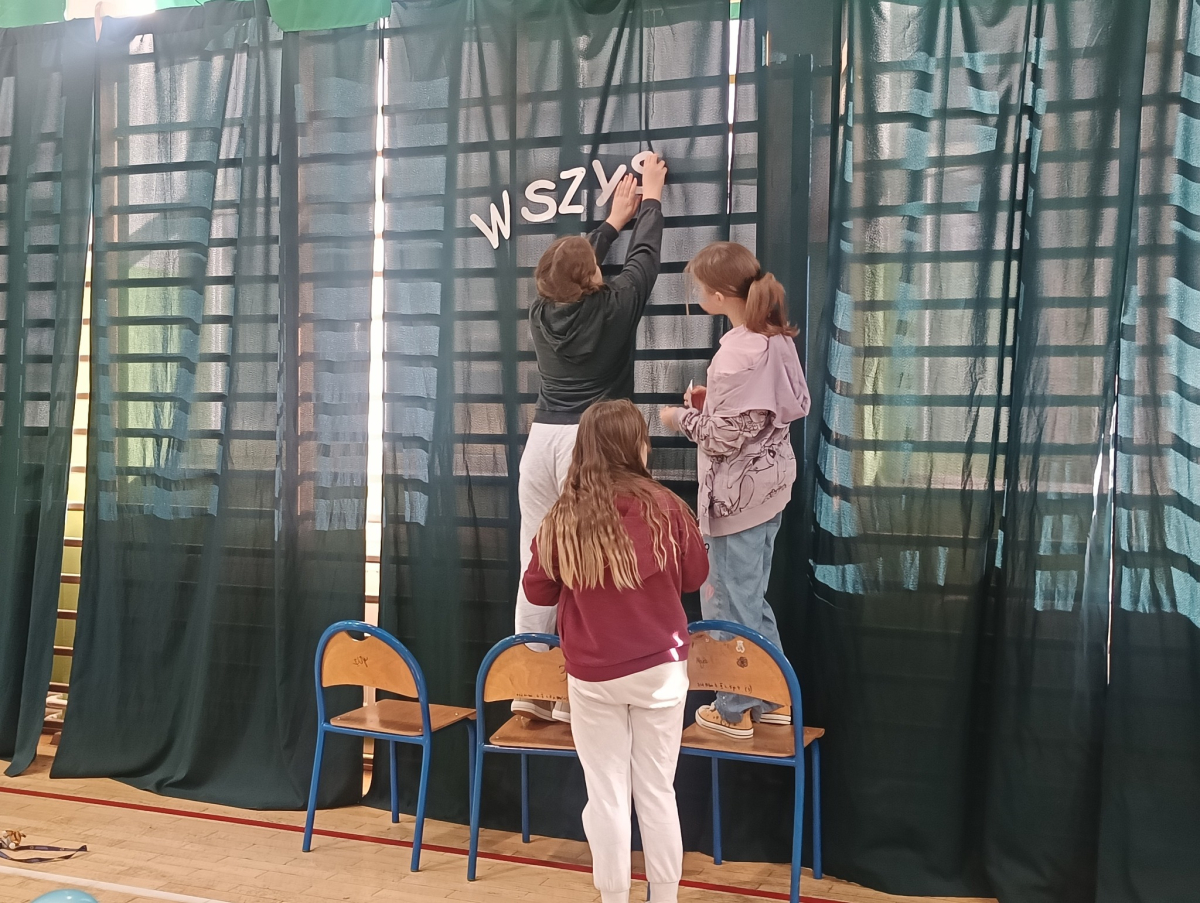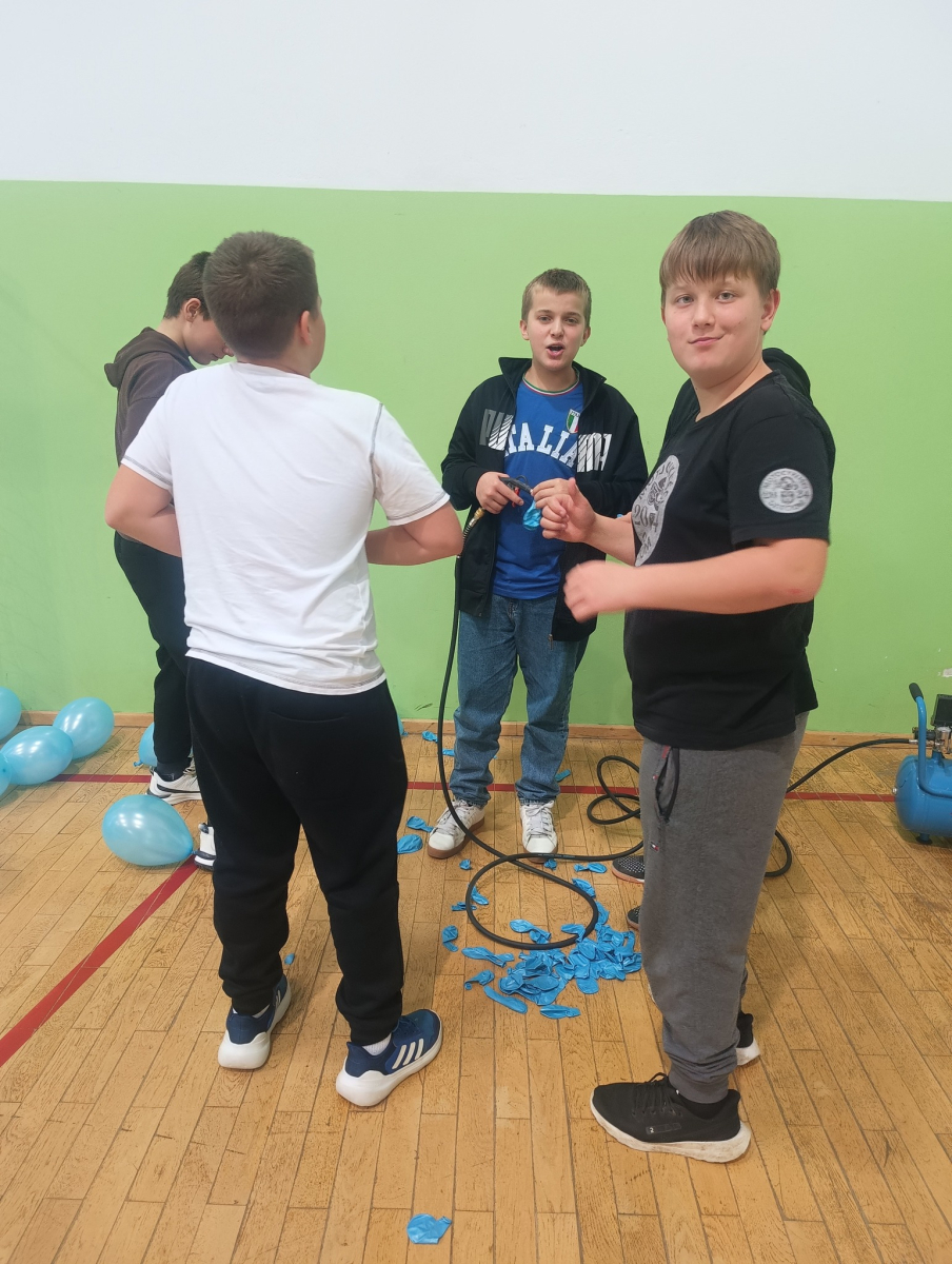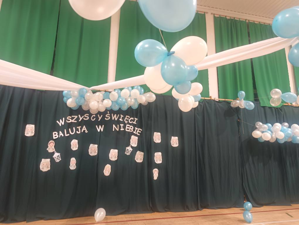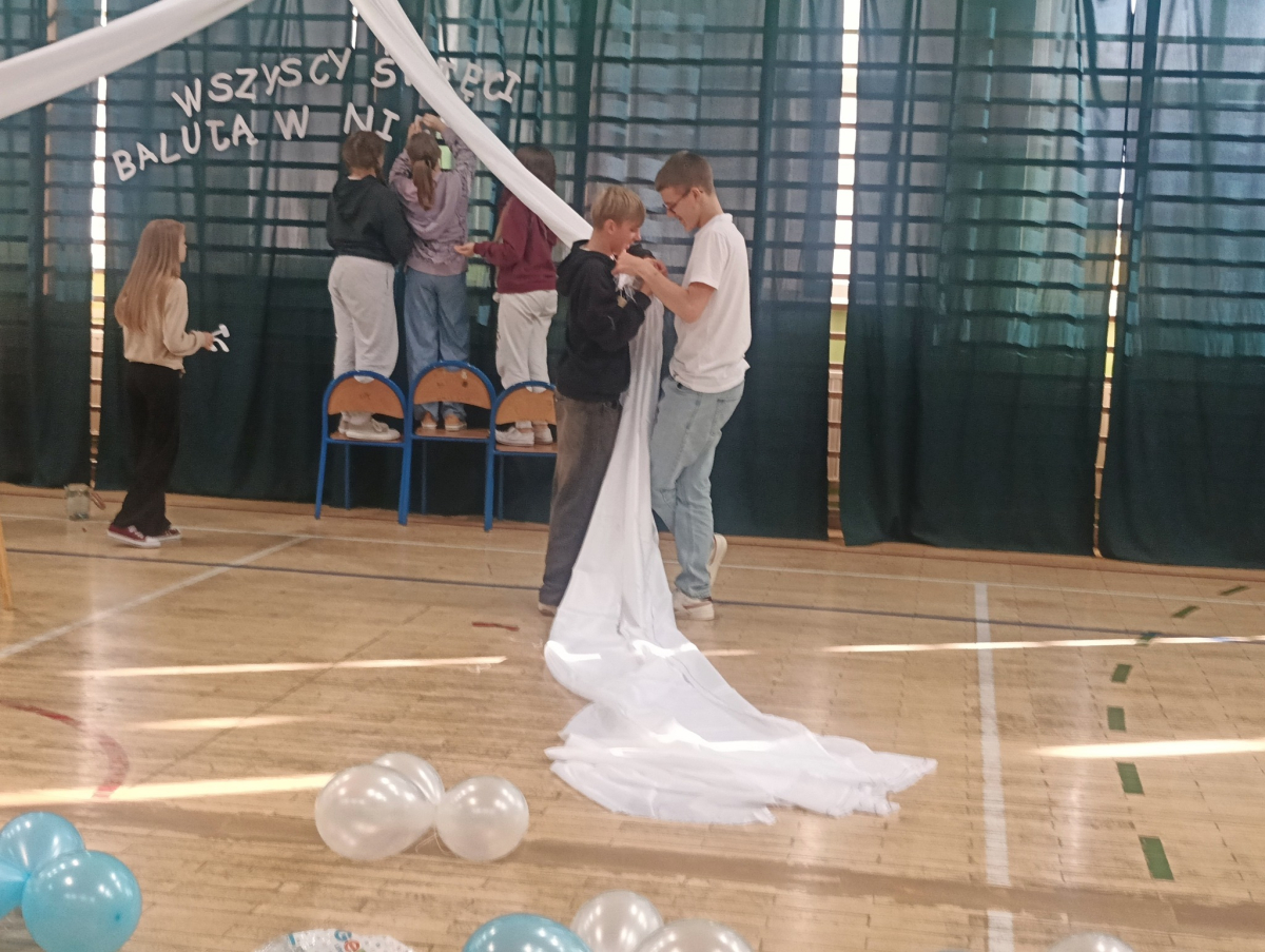 Przygotowania do Balu Wszystkich Świętych zakończone. Pracy było dużo, ale nikt się nie zraził. Uczniowie z opiekunami samorządu dzielnie pracowali, żeby wystrój sali był piękny. Najwytrwalsi zostali z nami do końca.