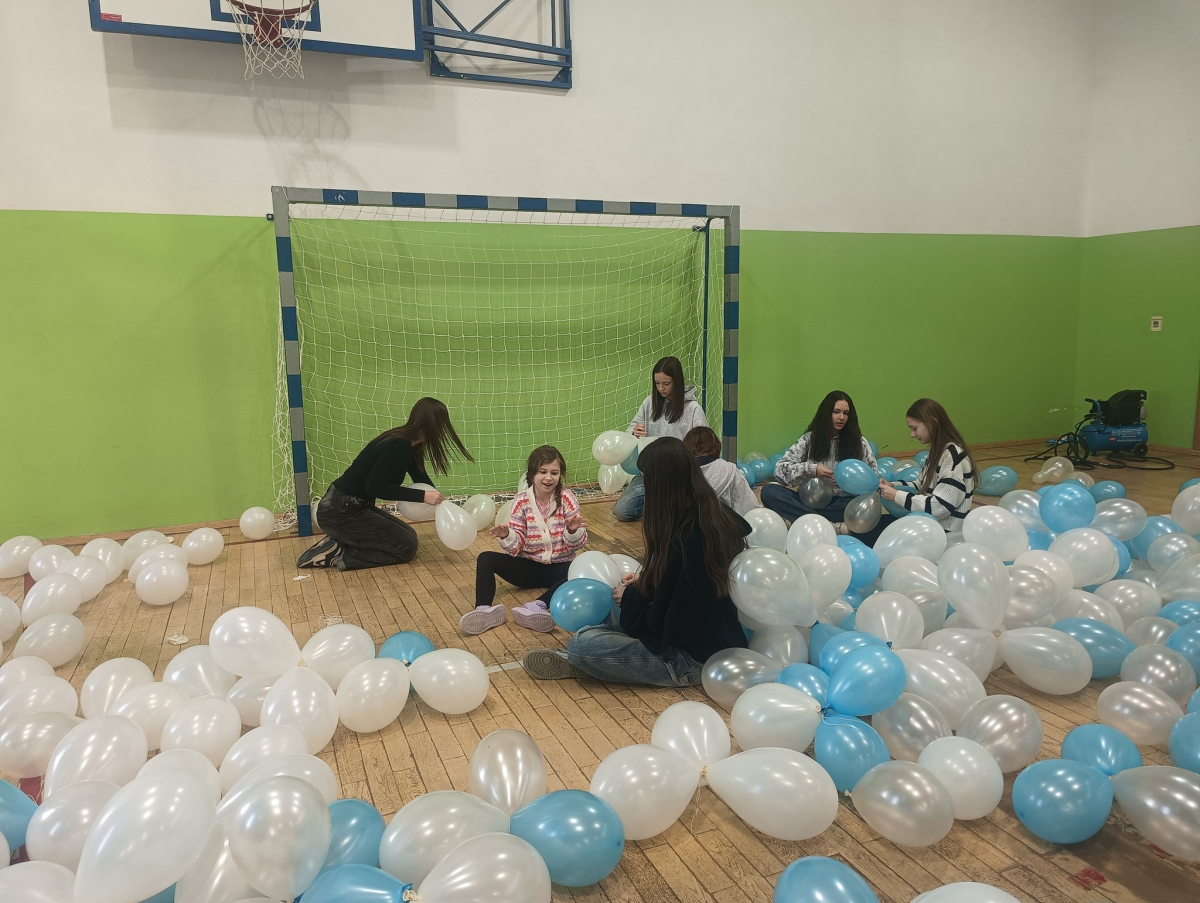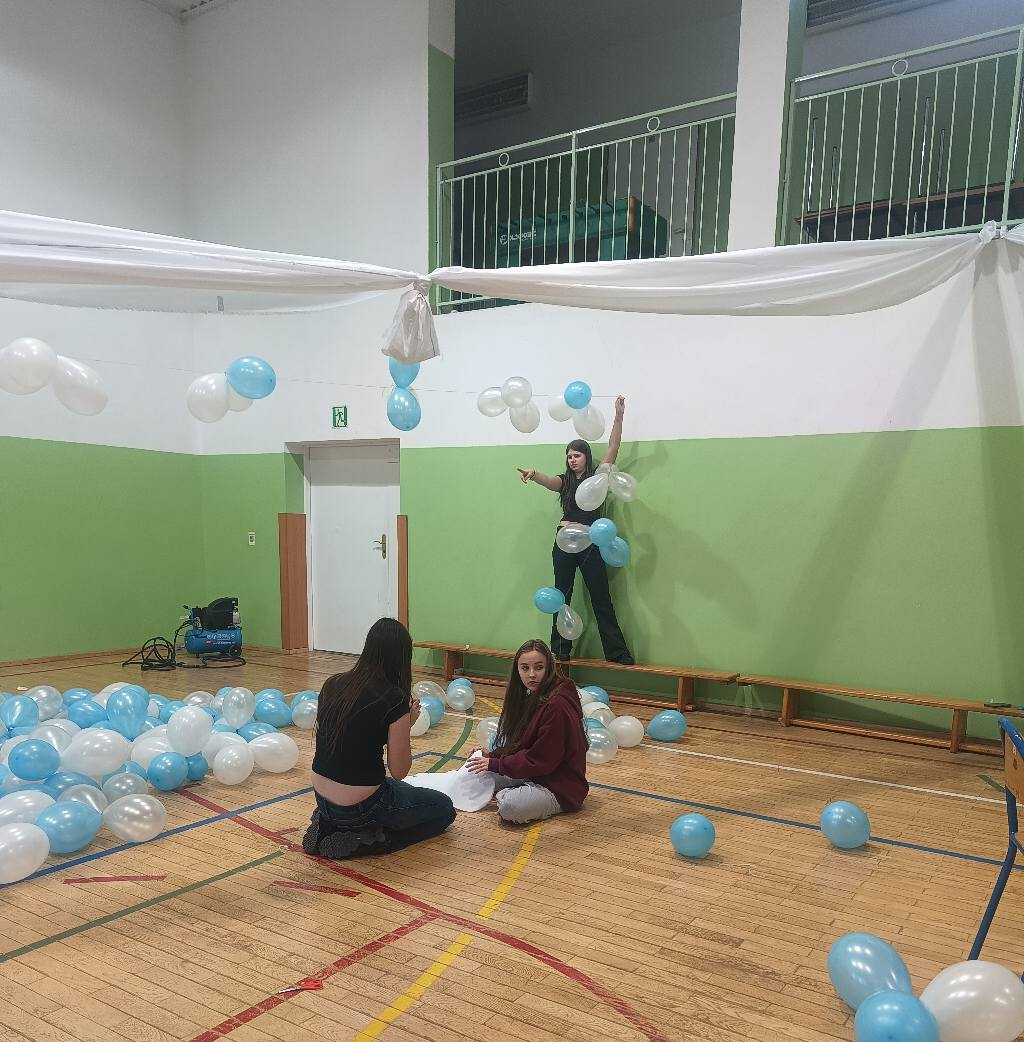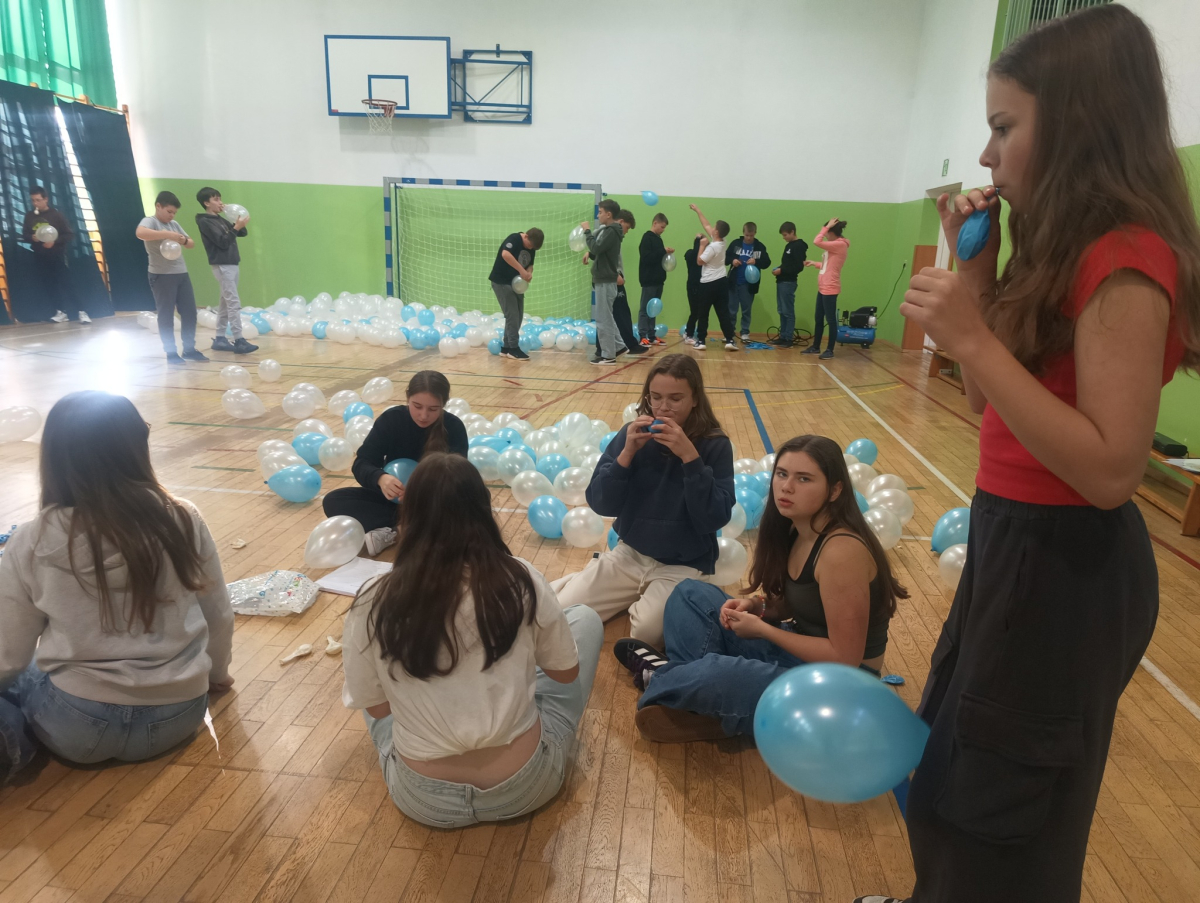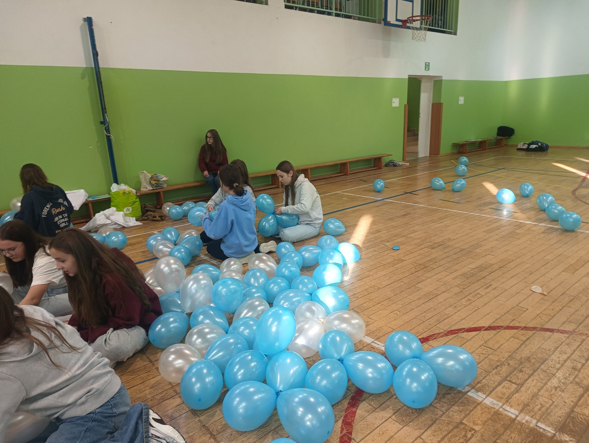 Przygotowania do Balu Wszystkich Świętych zakończone. Pracy było dużo, ale nikt się nie zraził. Uczniowie z opiekunami samorządu dzielnie pracowali, żeby wystrój sali był piękny. Najwytrwalsi zostali z nami do końca.
