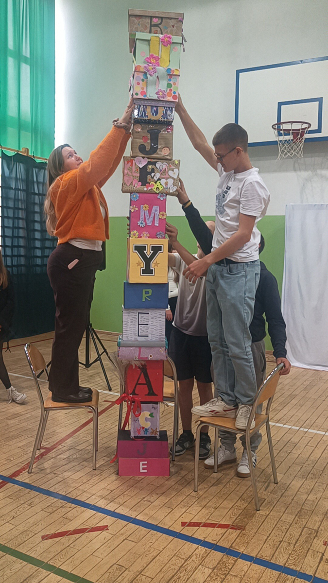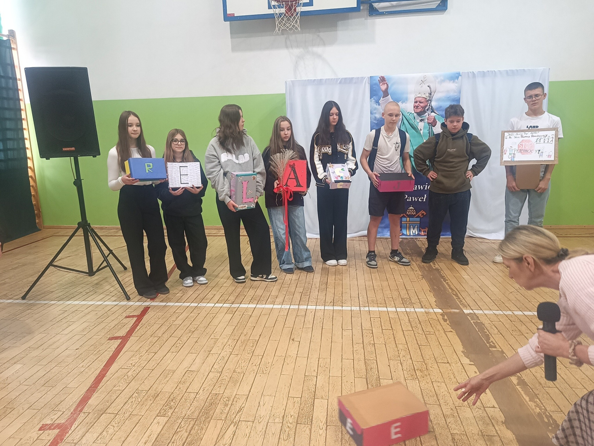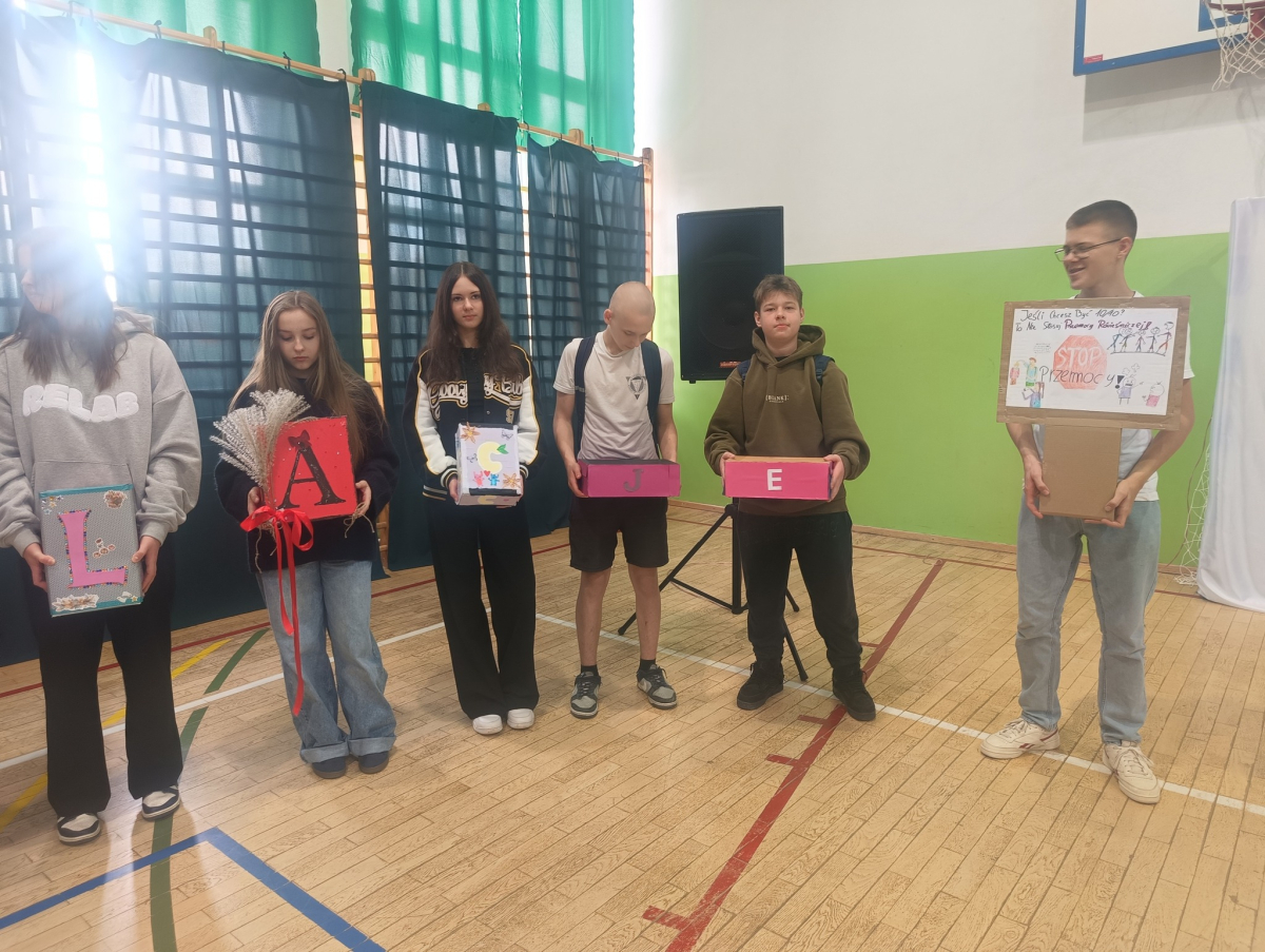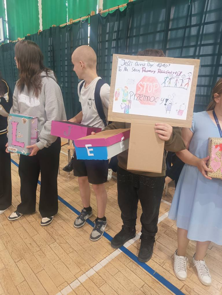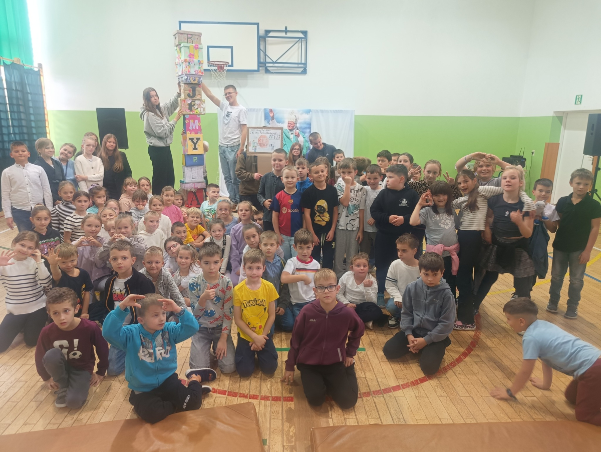 Każda klasa przygotowała i ozdobiła swoje pudełka z literami, które zostały zaprezentowane 16 października 2025r. na sali gimnastycznej. Następnie wspólnie stworzyliśmy Wieżę Relacji – symbol empatii, szacunku i współpracy.
