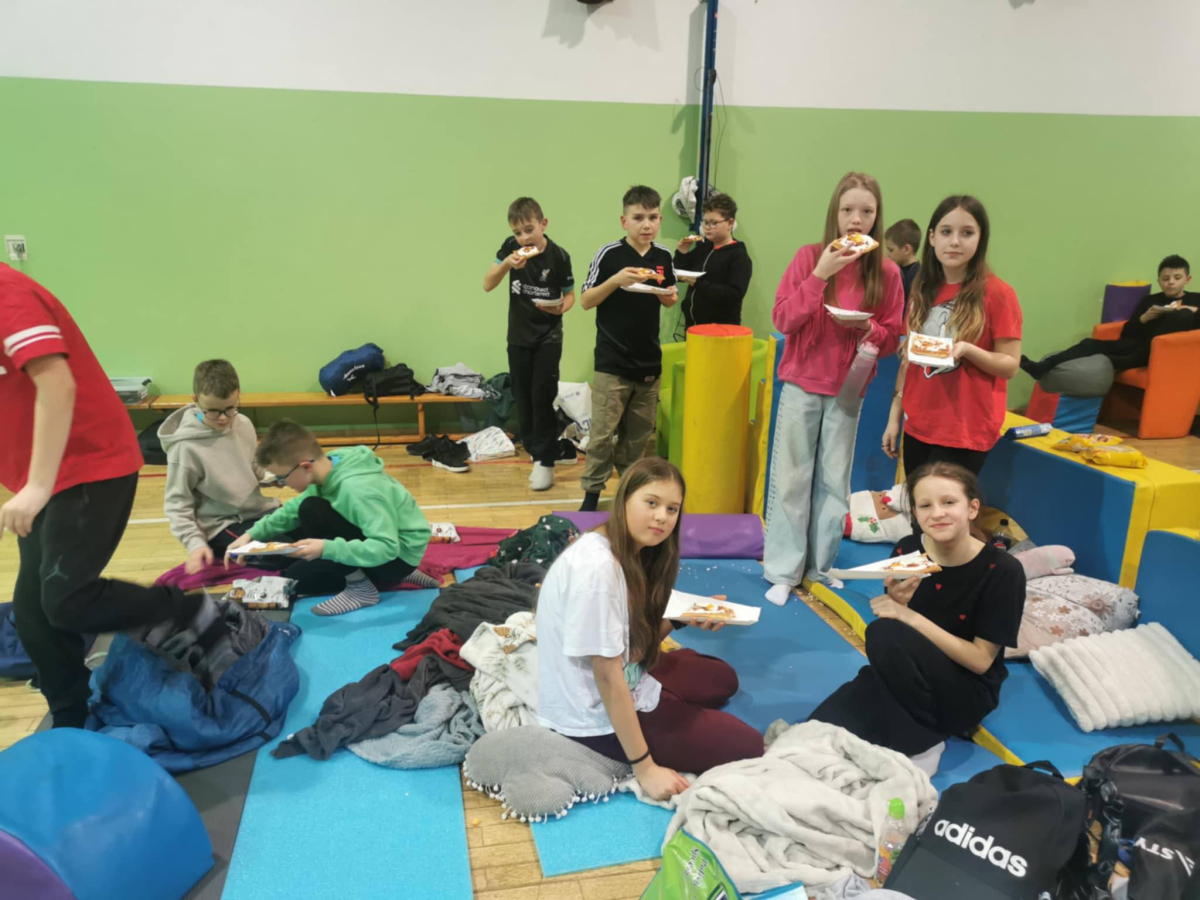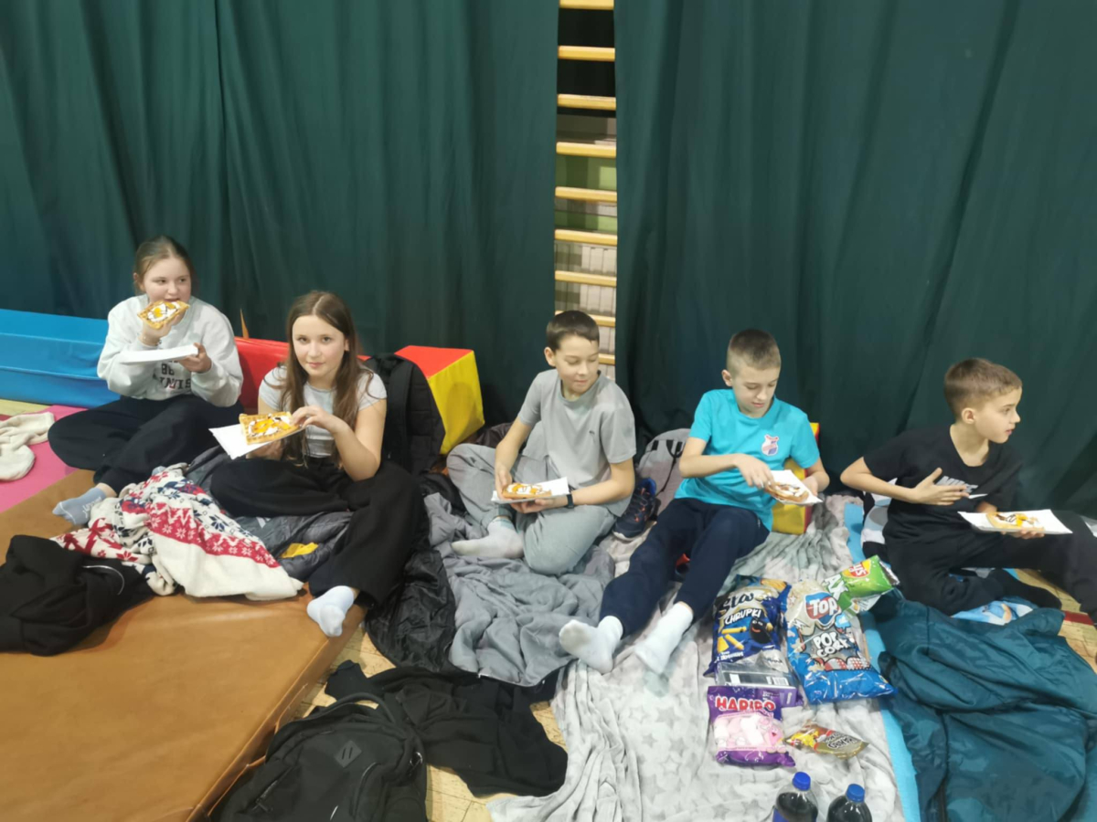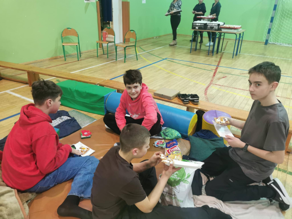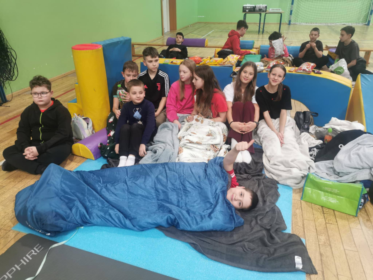W piątkowy wieczór przed feriami zimowymi nasza szkoła zamieniła się w prawdziwe kino. Na sali gimnastycznej odbył się wieczór filmowy dla uczniów klas 4-8. Już od pierwszych minut było czuć wyjątkową atmosferę – uczniowie przyszli z kocami i poduszkami, a na ich twarzach widać było radość i podekscytowanie.