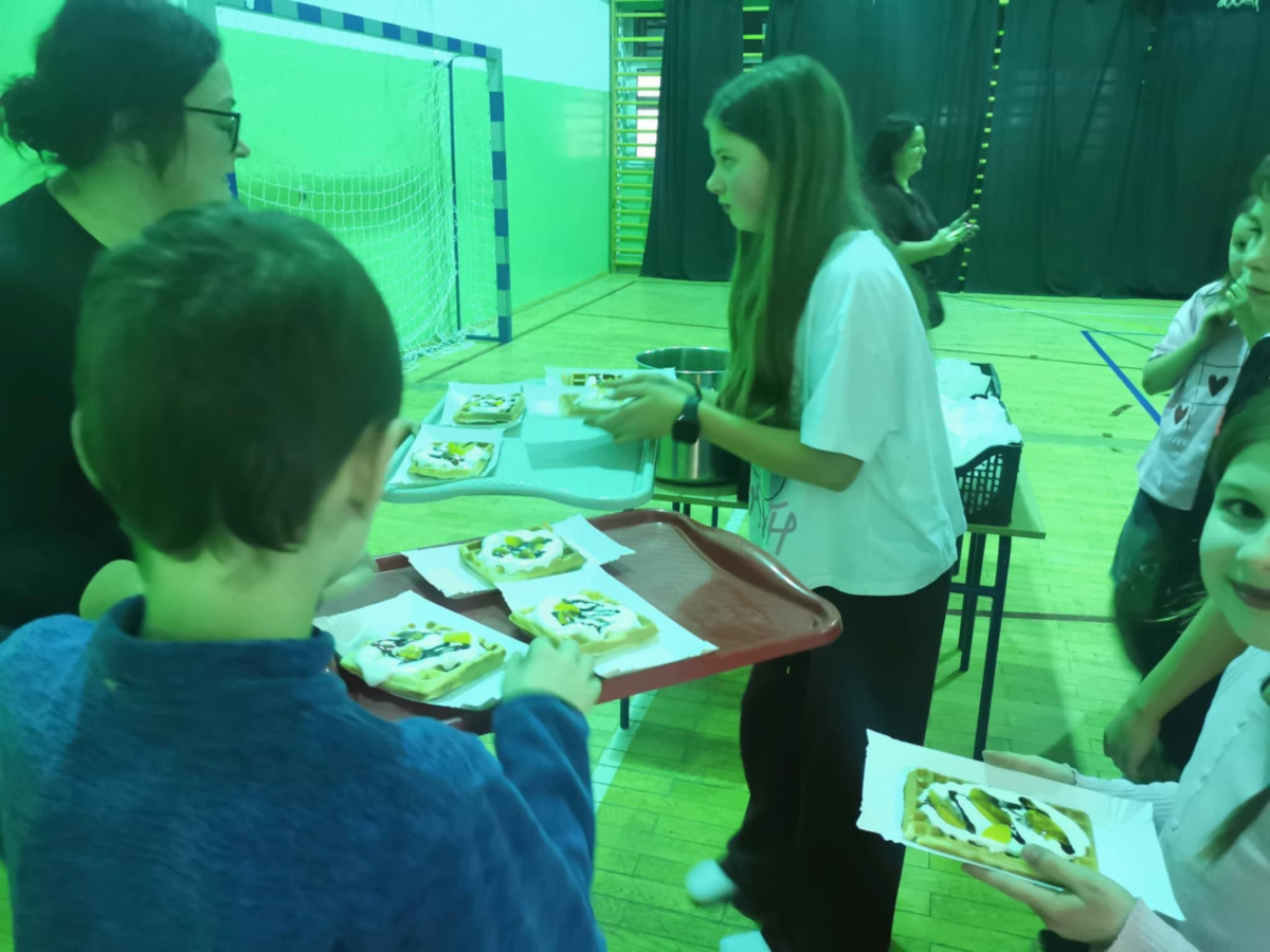 Ogromnym powodzeniem cieszył się przygotowany poczęstunek. Na stołach królowały świeże gofry z dodatkami, popcorn, pizzerinki oraz lemoniada. Serdeczne podziękowania kierujemy do Rady Rodziców w szczególności do Pań: Alicji Nowak, Beaty Jarosz, Marty Krzanowskiej, Joanny Waszkiewicz oraz Michaliny Zdeb za zaangażowanie, poświęcony czas oraz przygotowanie pysznych przekąsek. Dzięki Państwa wsparciu wieczór filmowy miał wyjątkowy, ciepły i rodzinny charakter.