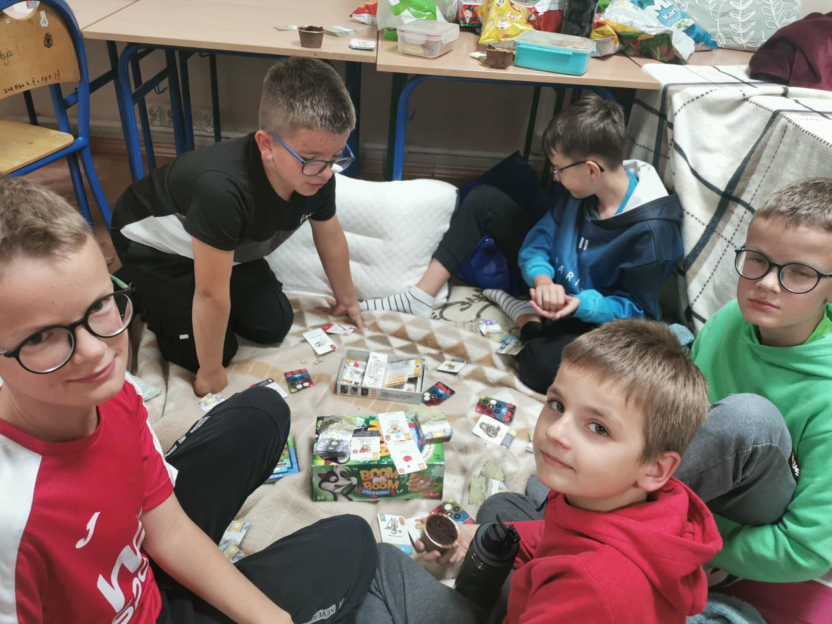 W piątkowy wieczór 3 października uczniowie klasy 5 spotkali się w szkole na wyjątkowym wydarzeniu – wieczorze gier planszowych. Była to doskonała okazja, by wspólnie spędzić czas, dobrze się bawić i oderwać na chwilę od szkolnych obowiązków.