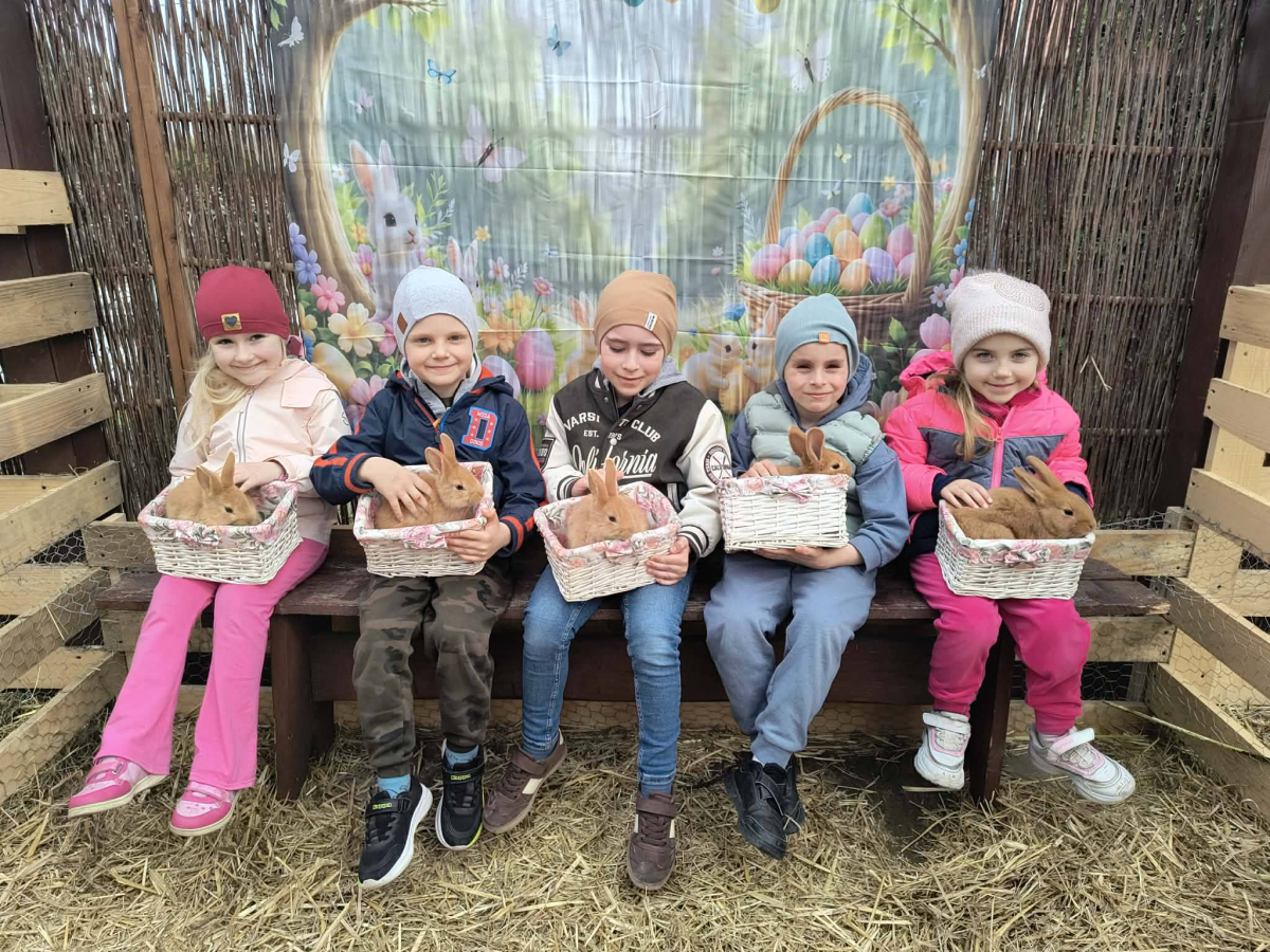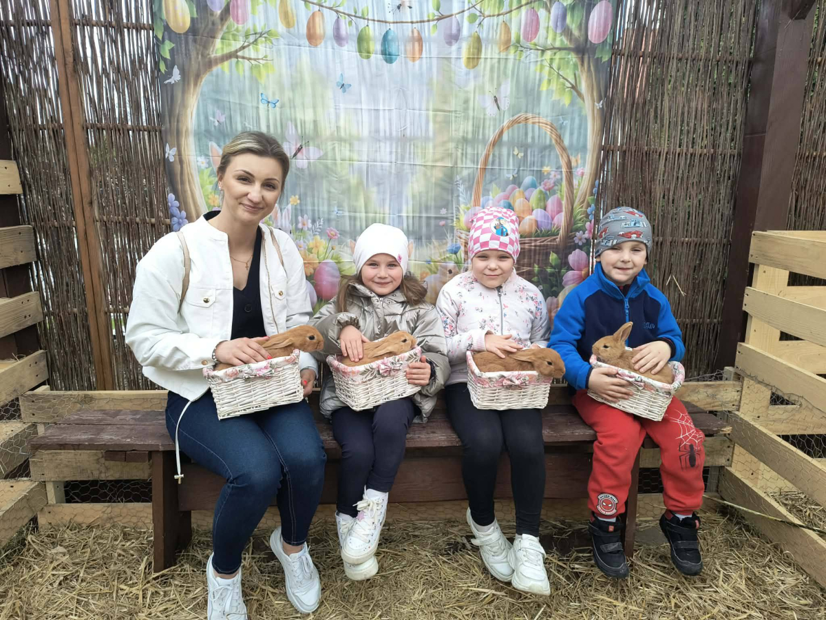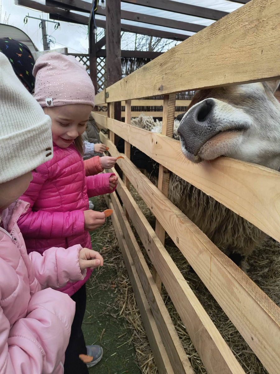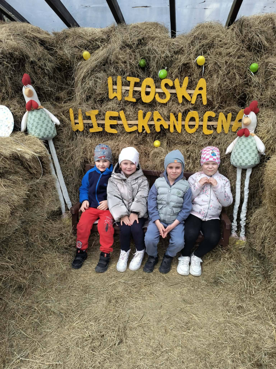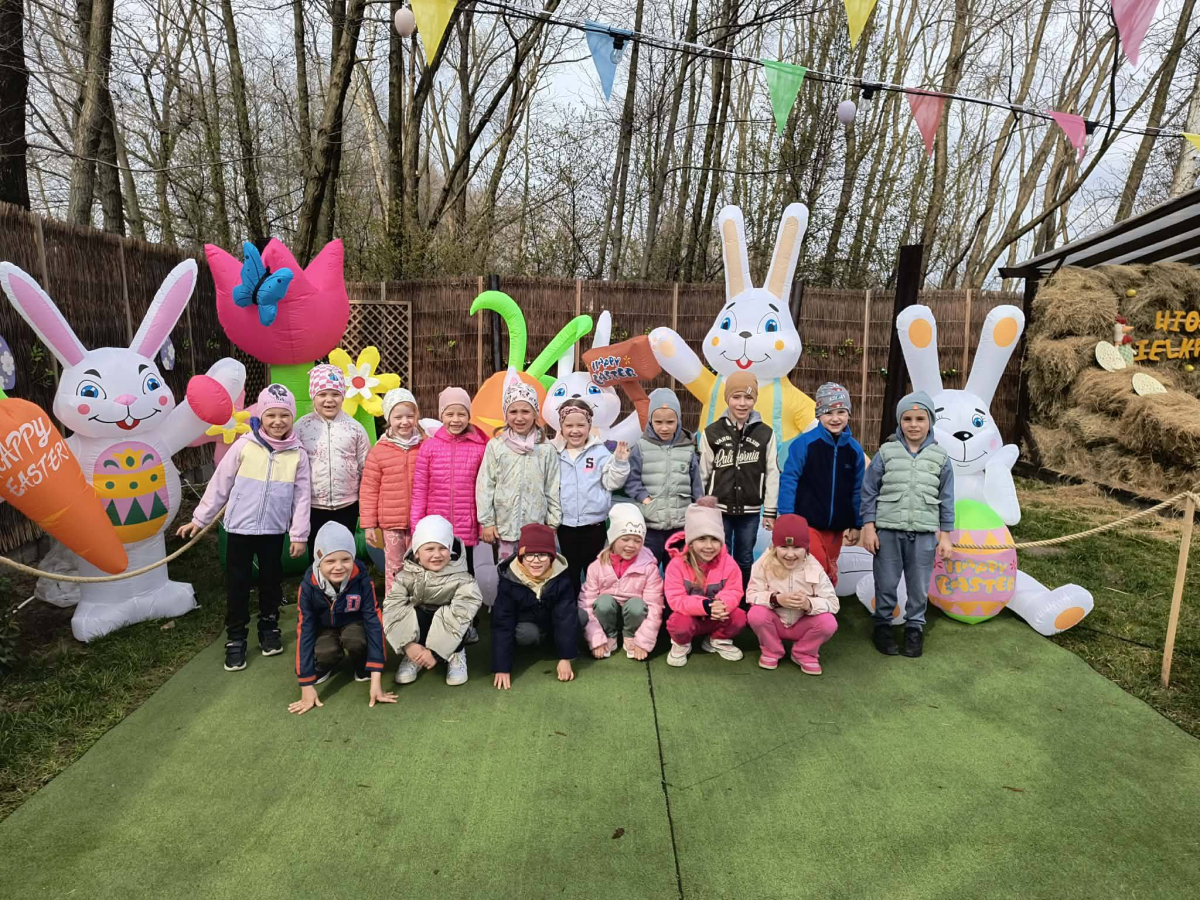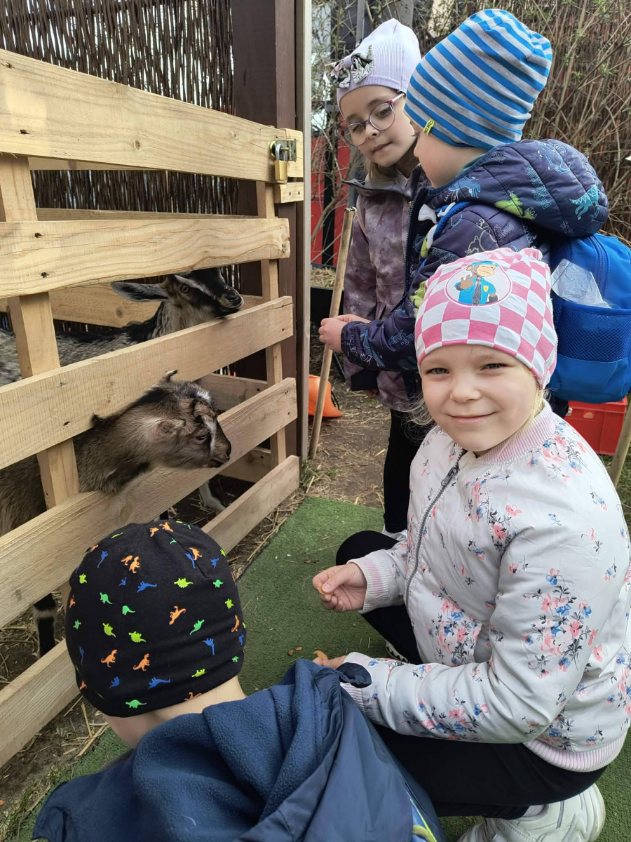 Zwieńczeniem dnia był wyjazd do Wioski Wielkanocnej. Tam przedszkolaki miały okazję zobaczyć zwierzęta gospodarskie, takie jak króliki, kozy, krowę i owce. Największą atrakcją dla dzieci było karmienie zwierząt, które sprawiło im wiele radości i dostarczyło niezapomnianych wrażeń. Dzieci wzięły również udział w warsztatach plastycznych, podczas których malowały króliczki.