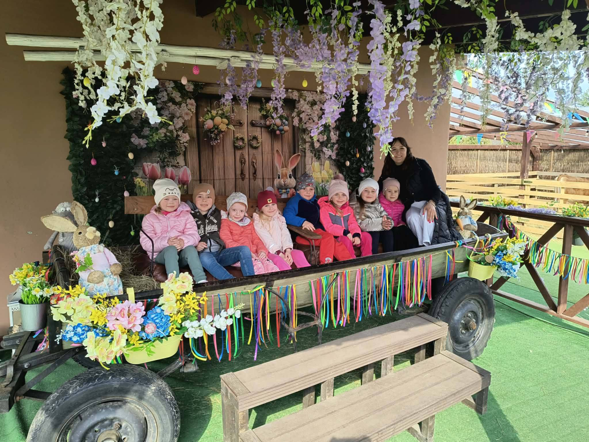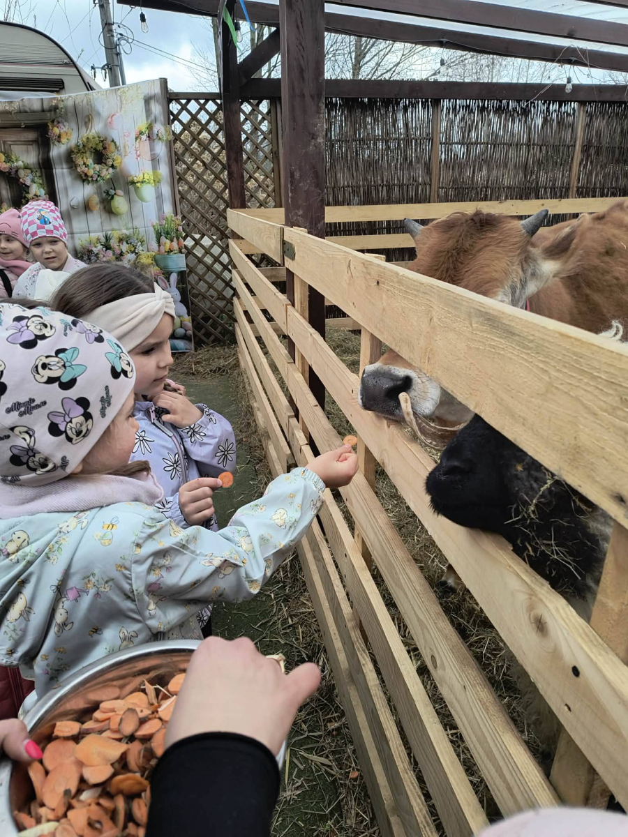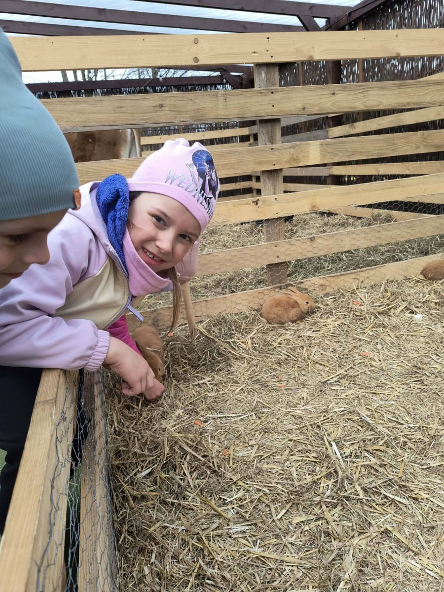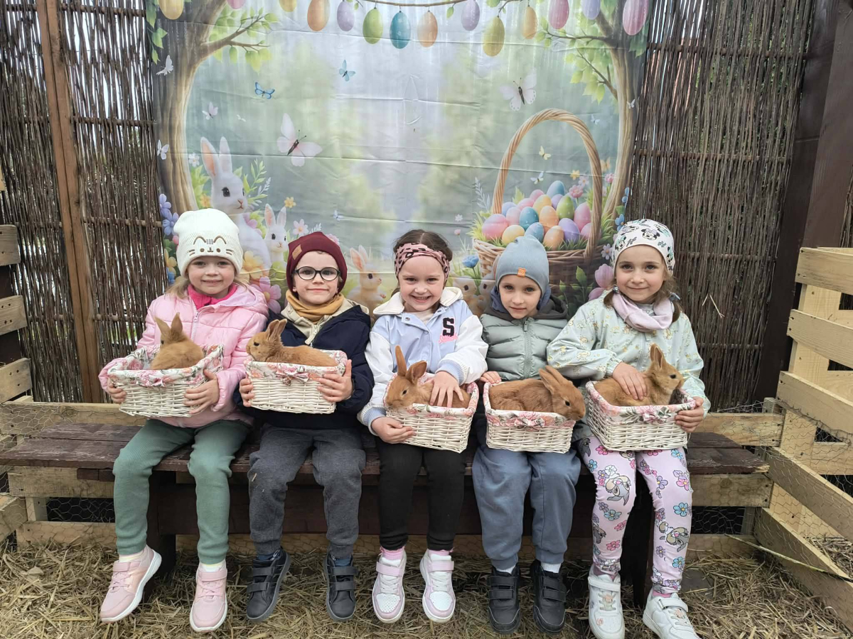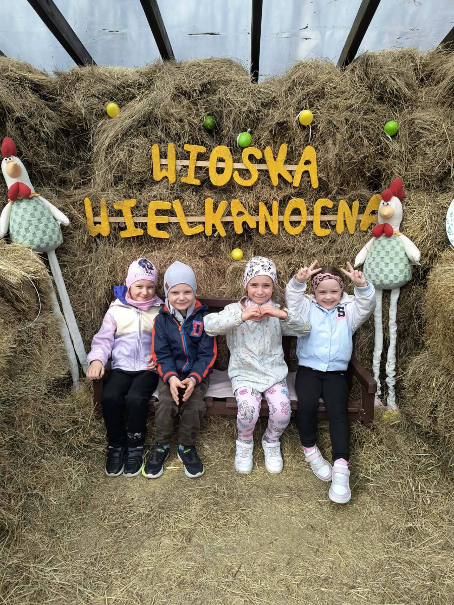 Zwieńczeniem dnia był wyjazd do Wioski Wielkanocnej. Tam przedszkolaki miały okazję zobaczyć zwierzęta gospodarskie, takie jak króliki, kozy, krowę i owce. Największą atrakcją dla dzieci było karmienie zwierząt, które sprawiło im wiele radości i dostarczyło niezapomnianych wrażeń. Dzieci wzięły również udział w warsztatach plastycznych, podczas których malowały króliczki.