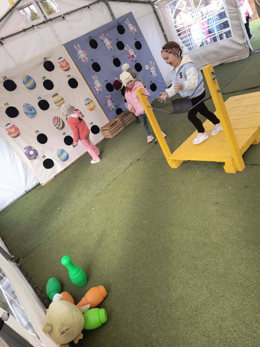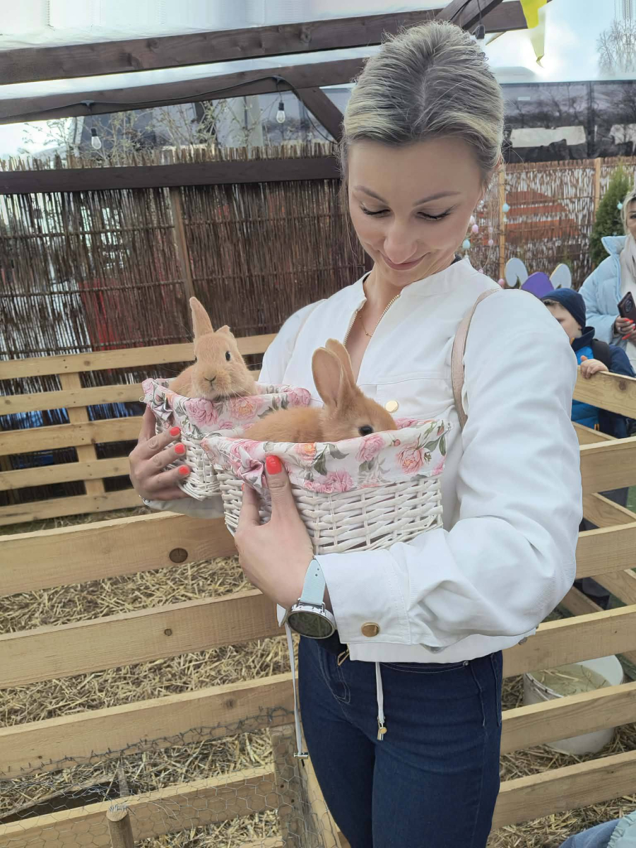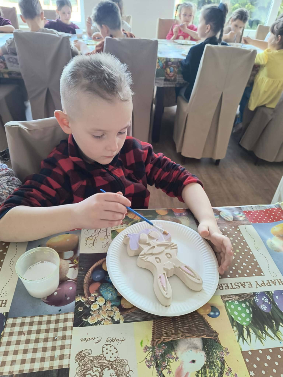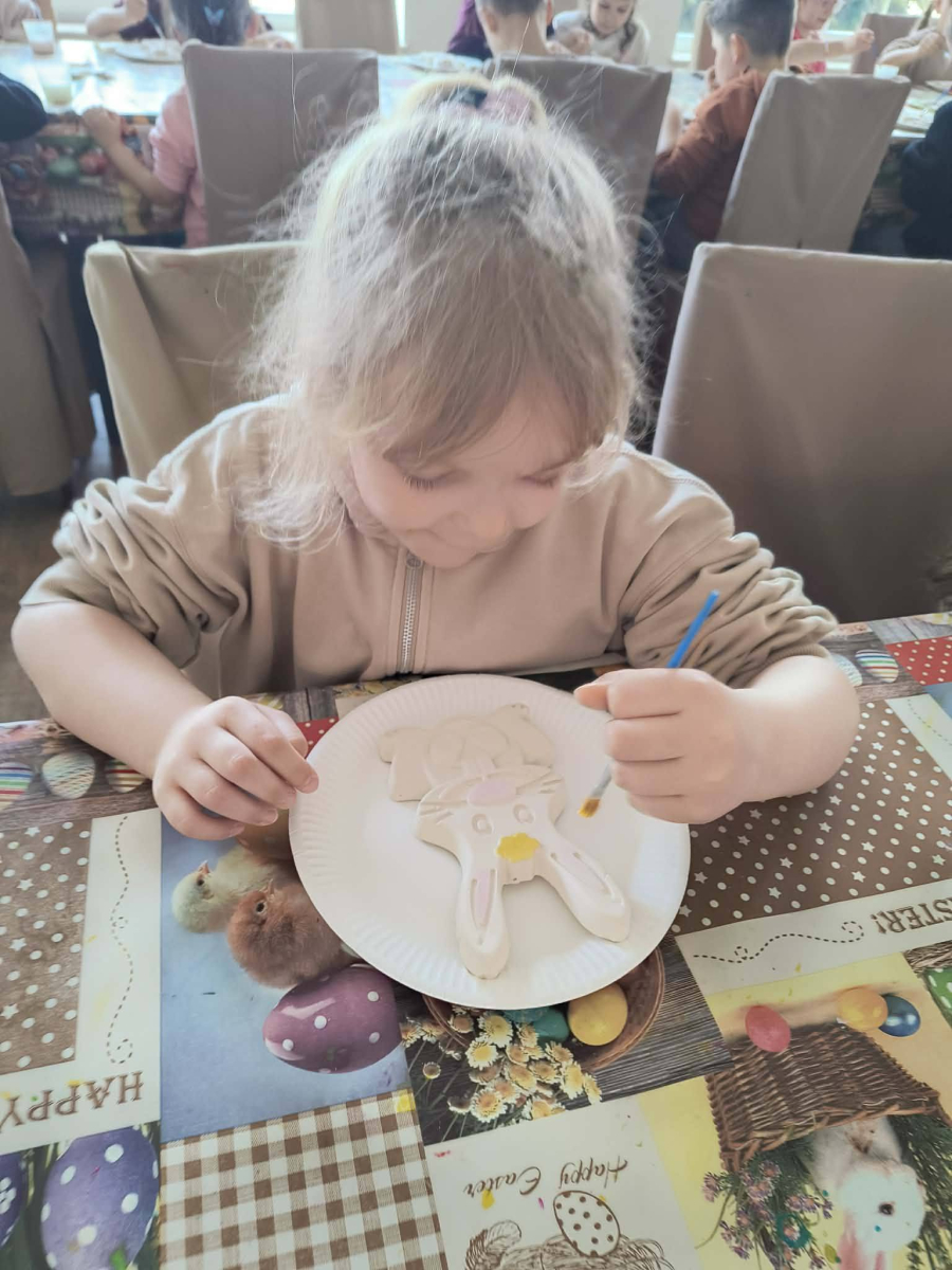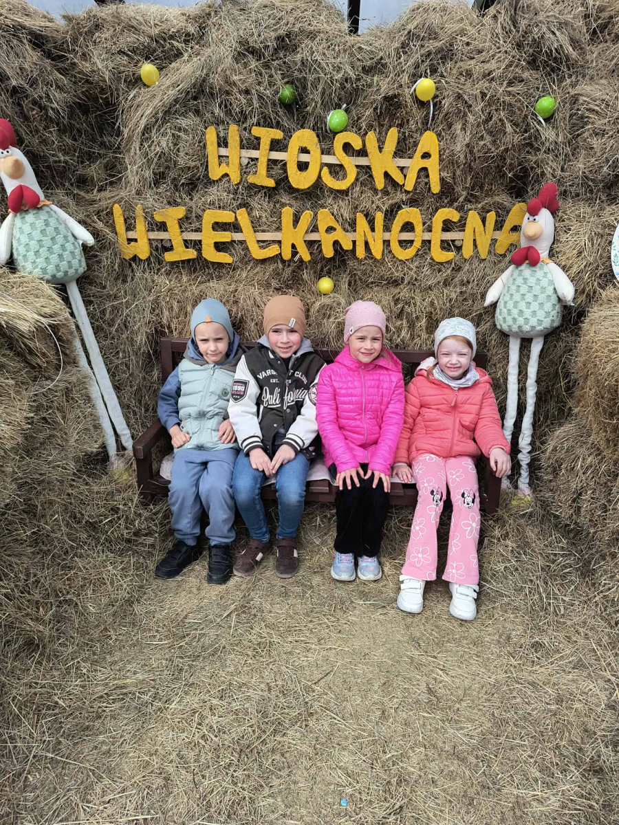 Zwieńczeniem dnia był wyjazd do Wioski Wielkanocnej. Tam przedszkolaki miały okazję zobaczyć zwierzęta gospodarskie, takie jak króliki, kozy, krowę i owce. Największą atrakcją dla dzieci było karmienie zwierząt, które sprawiło im wiele radości i dostarczyło niezapomnianych wrażeń. Dzieci wzięły również udział w warsztatach plastycznych, podczas których malowały króliczki.