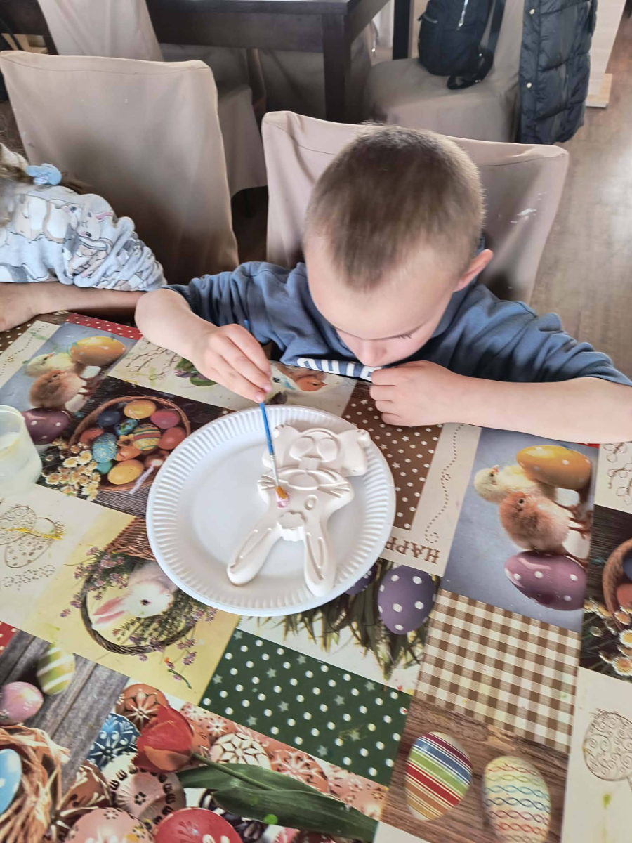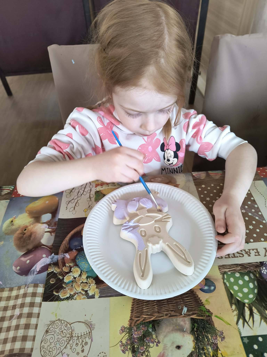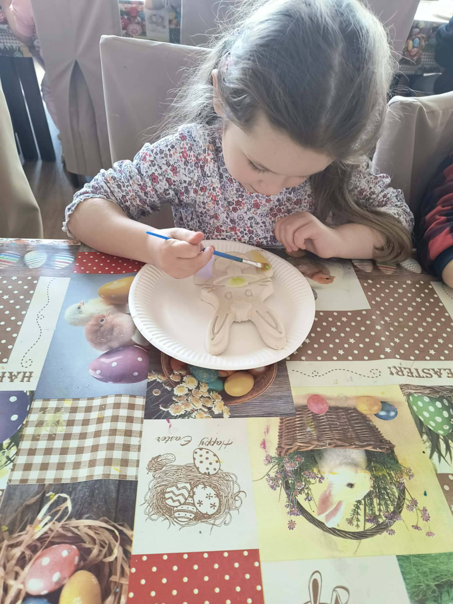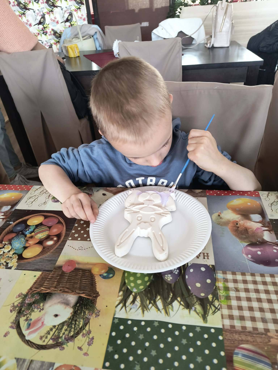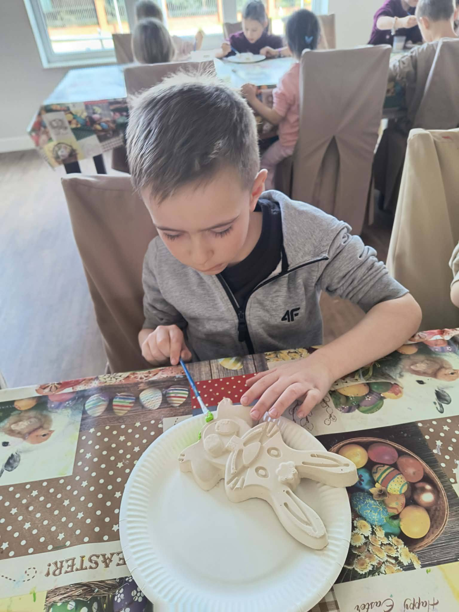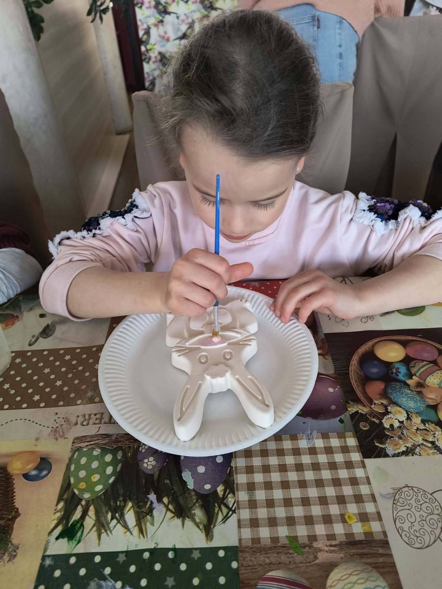 Zwieńczeniem dnia był wyjazd do Wioski Wielkanocnej. Tam przedszkolaki miały okazję zobaczyć zwierzęta gospodarskie, takie jak króliki, kozy, krowę i owce. Największą atrakcją dla dzieci było karmienie zwierząt, które sprawiło im wiele radości i dostarczyło niezapomnianych wrażeń. Dzieci wzięły również udział w warsztatach plastycznych, podczas których malowały króliczki.