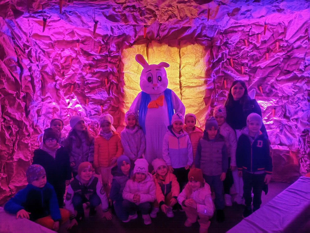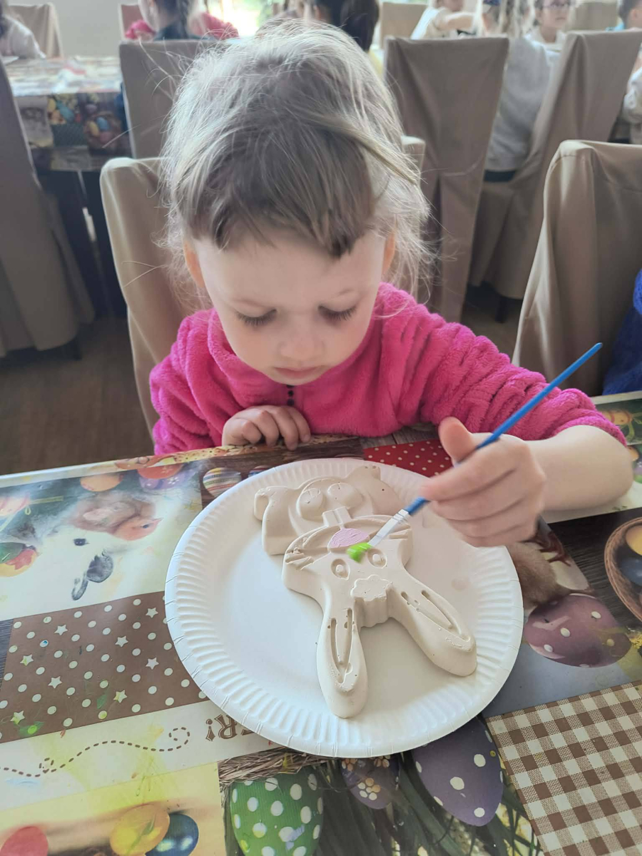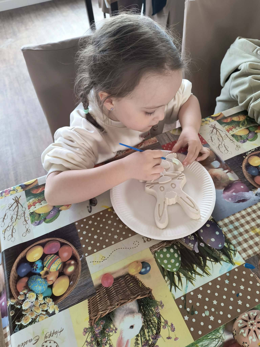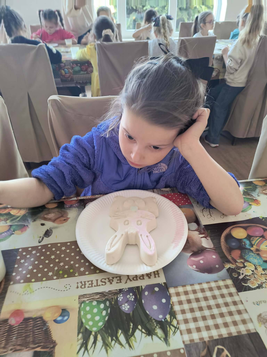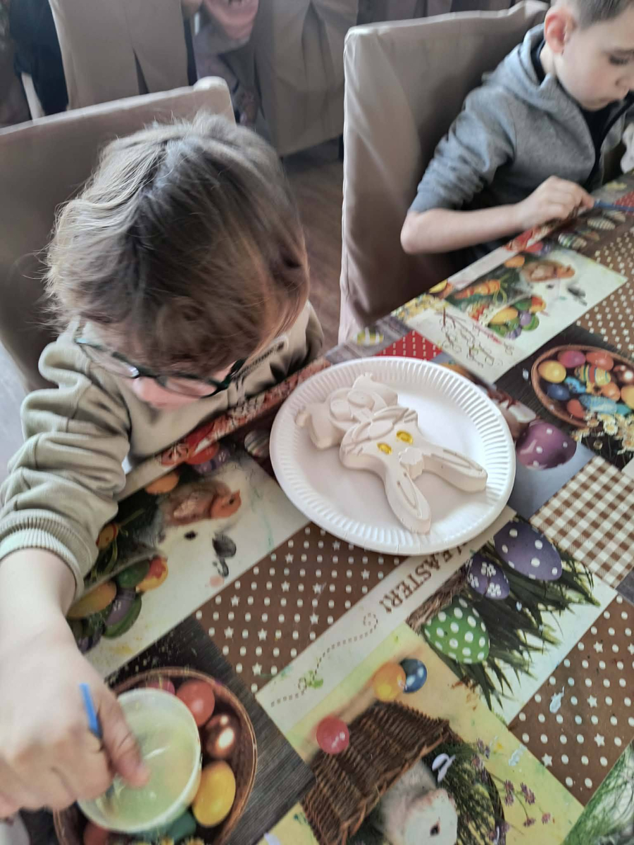 Zwieńczeniem dnia był wyjazd do Wioski Wielkanocnej. Tam przedszkolaki miały okazję zobaczyć zwierzęta gospodarskie, takie jak króliki, kozy, krowę i owce. Największą atrakcją dla dzieci było karmienie zwierząt, które sprawiło im wiele radości i dostarczyło niezapomnianych wrażeń. Dzieci wzięły również udział w warsztatach plastycznych, podczas których malowały króliczki.