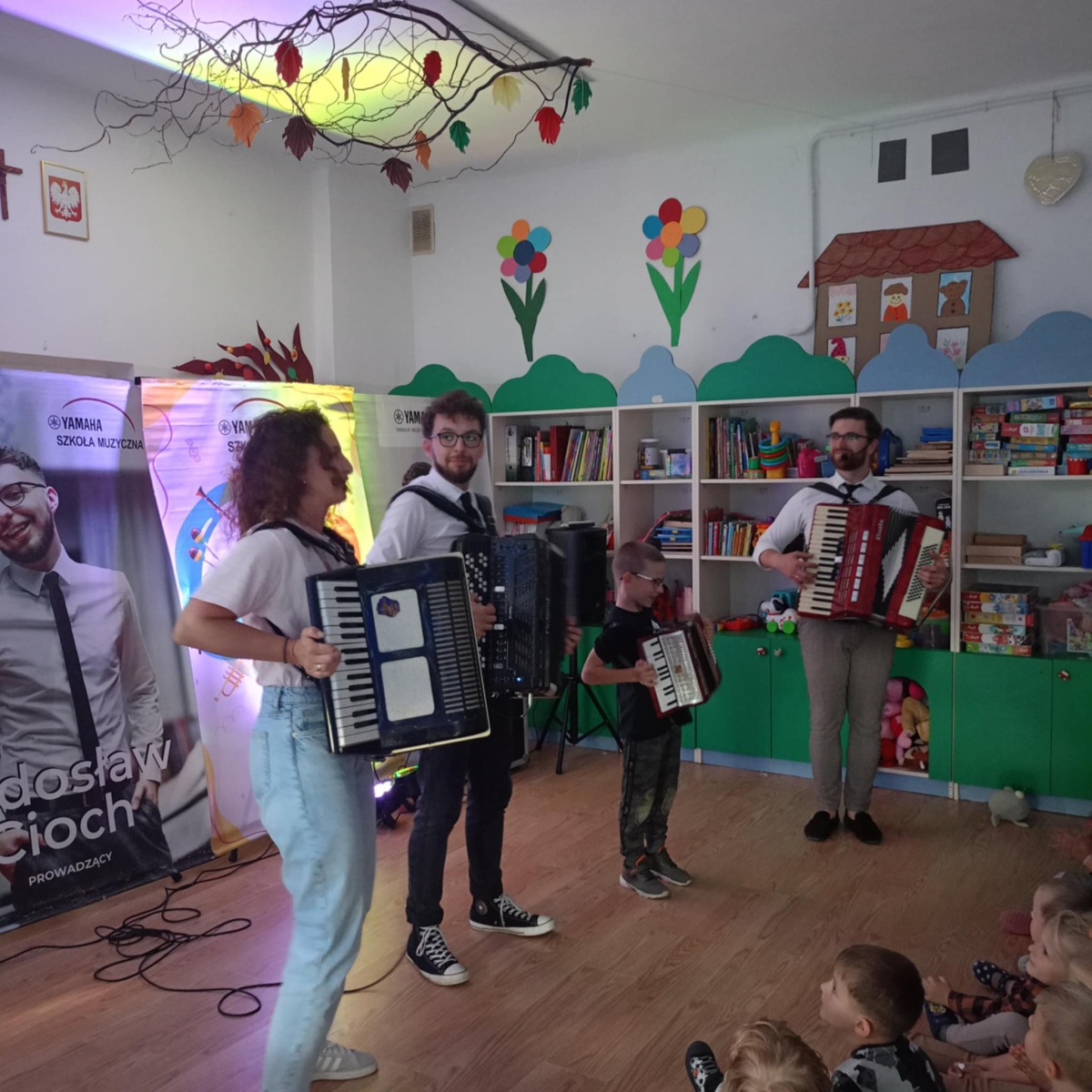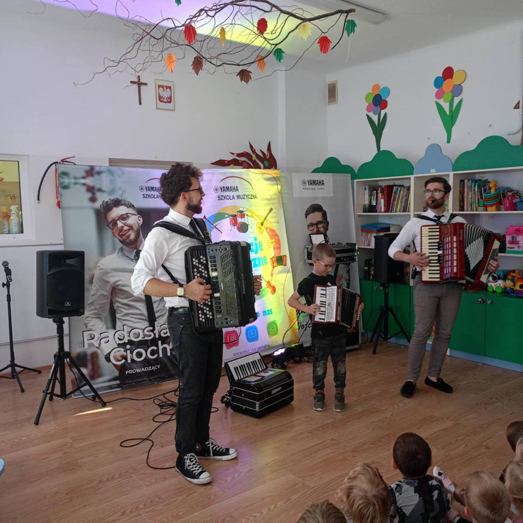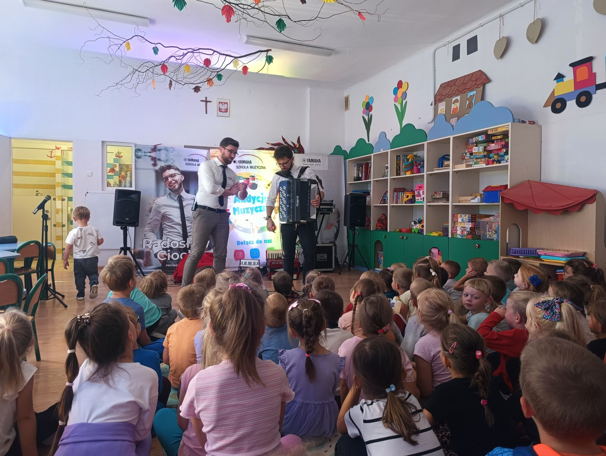 Dzisiaj, 18 września, w naszej szkole odbyły się pierwsze w tym roku zajęcia muzyczne „Yamaha”. Wzięły w nich udział grupy przedszkolne i klasa pierwsza. Dzieci poznały budowę, zasady gry i rodzaje akordeonów: klawiszowego, guzikowego i basowego, świetnie się przy tym bawiąc.
