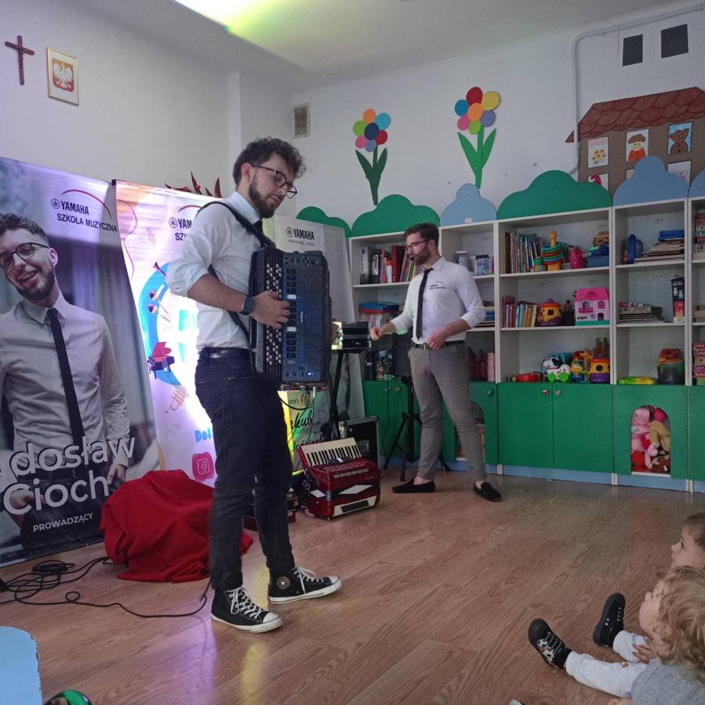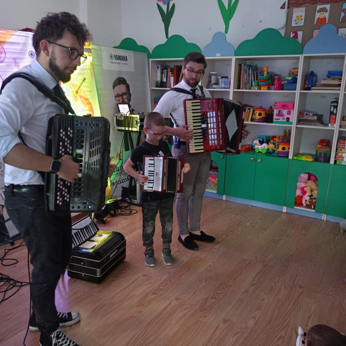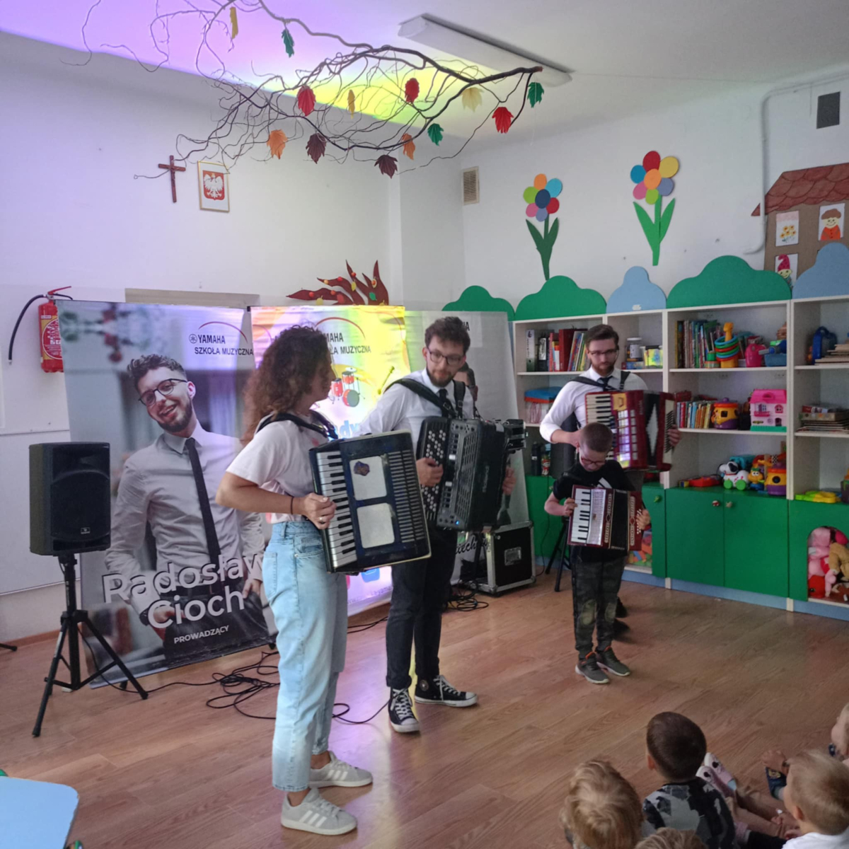 Dzisiaj, 18 września, w naszej szkole odbyły się pierwsze w tym roku zajęcia muzyczne „Yamaha”. Wzięły w nich udział grupy przedszkolne i klasa pierwsza. Dzieci poznały budowę, zasady gry i rodzaje akordeonów: klawiszowego, guzikowego i basowego, świetnie się przy tym bawiąc.
